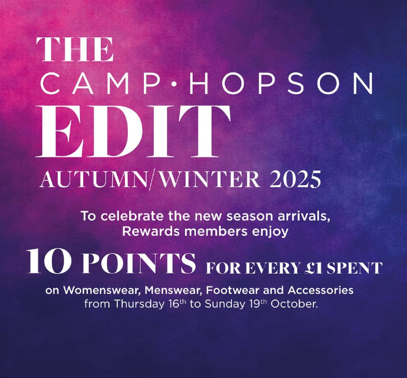 Discover the latest trends for the new season at The Camp Hopson Edit. Enjoy a glass of fizz, a sweet treat and autumnal vibes from our DJ