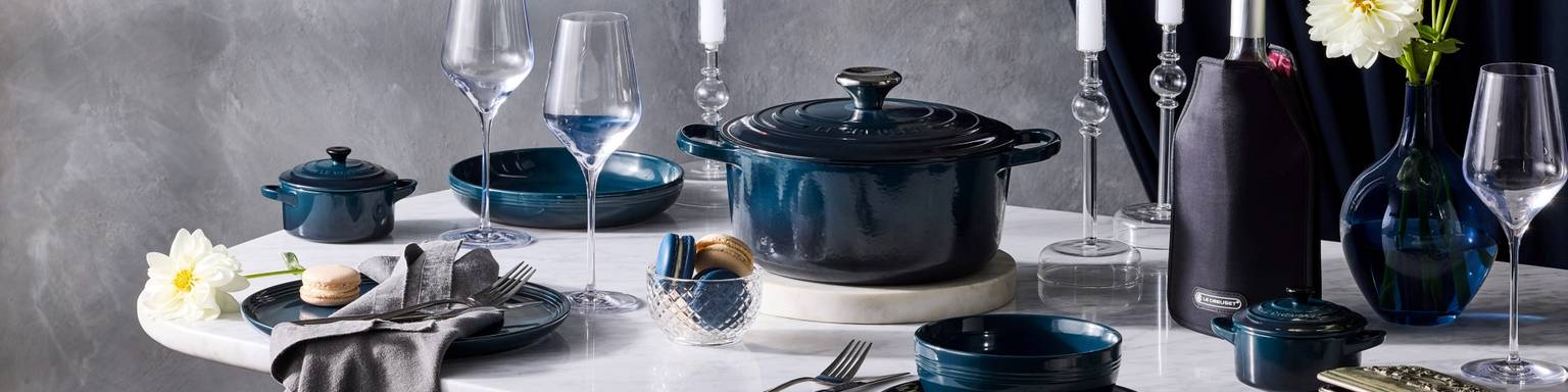 Elevate your kitchen with the Le Creuset Nuit Collection at Elys Wimbledon, available online and in-store. Inspired by the deep elegance of midnight blue, the Nuit range combines Le Creuset’s iconic craftsmanship with a rich, sophisticated hue that complements any home. From cast iron casseroles and stoneware dishes to mugs and oven-to-table cookware, each piece delivers outstanding performance and timeless design.