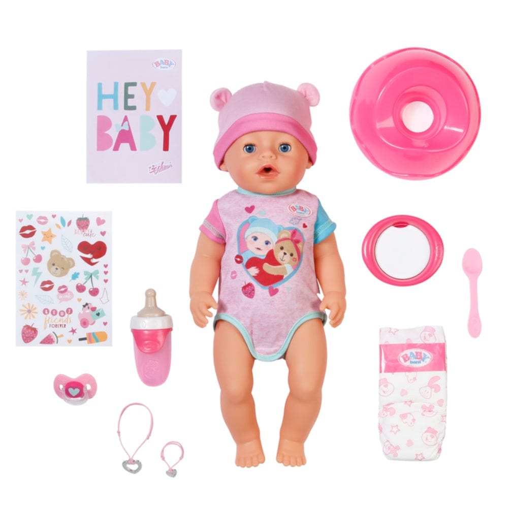 BABY born Emma is not simply a doll; she drinks, eats, cries, sleeps, and uses the potty. All without requiring batteries. Featuring 10 interactive functions and carefully crafted accessories, she offers an engaging and realistic play experience that enhances developmental play for children.