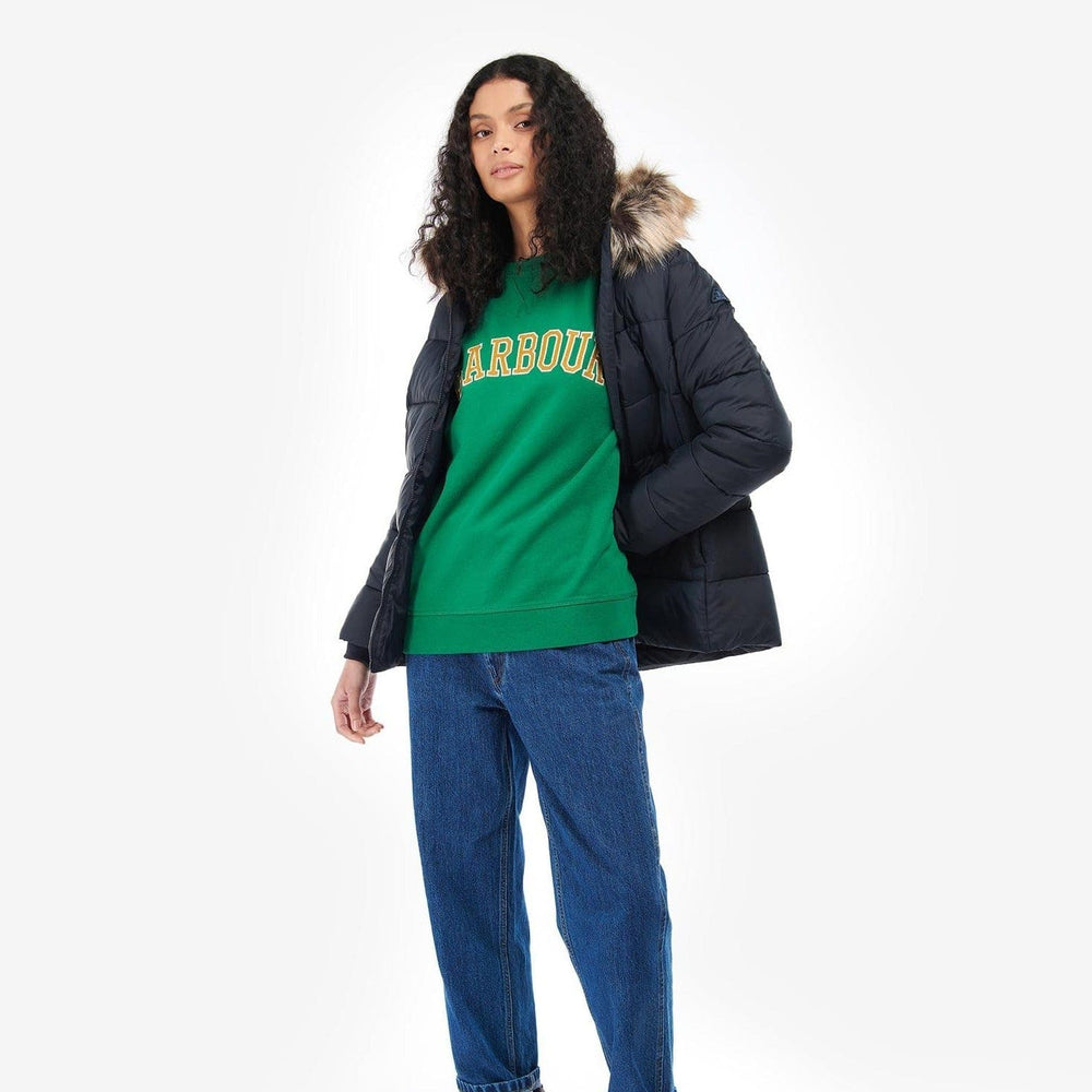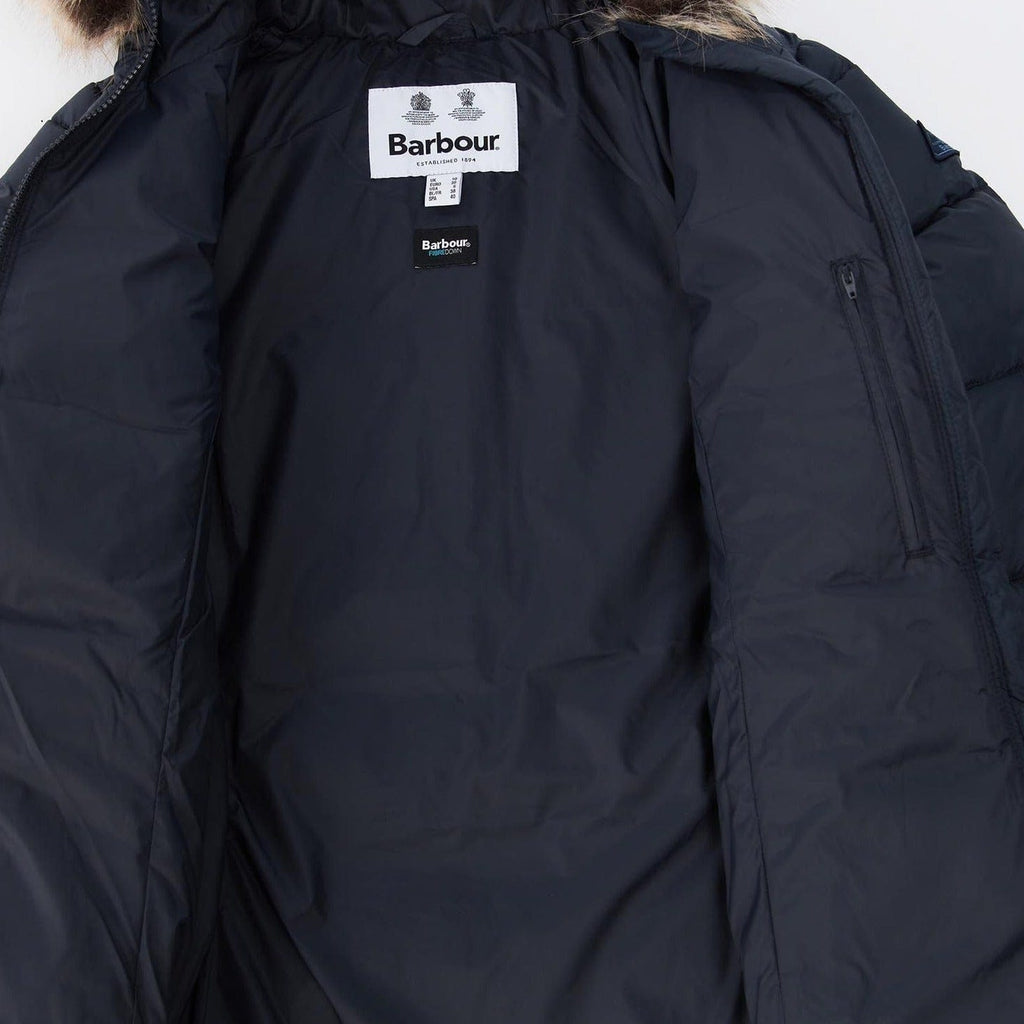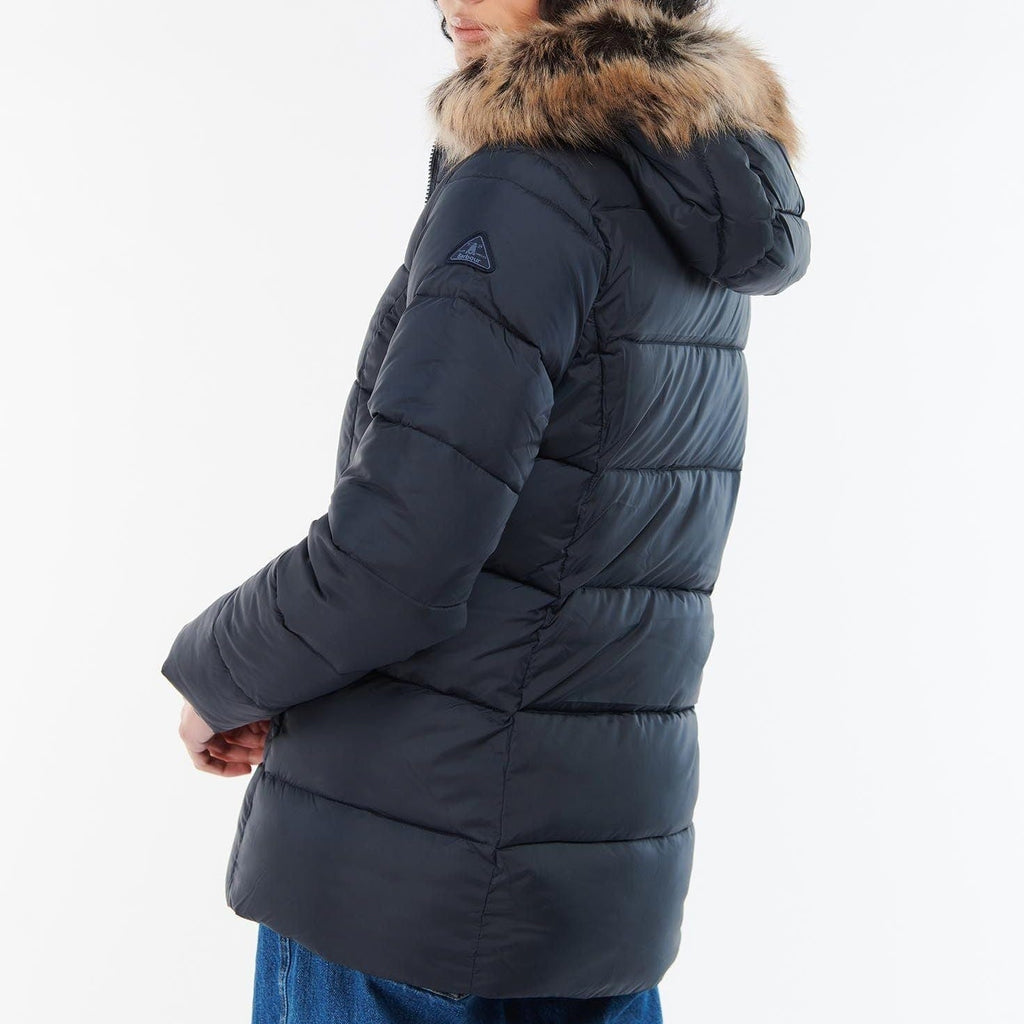 The Barbour Midhurst Quilted Jacket boasts a short length design for the perfect everyday pairing. With a deep all over baffle design, this jacket features a faux fur trimmed hood and ribbed cuffs for added protection against the cold.