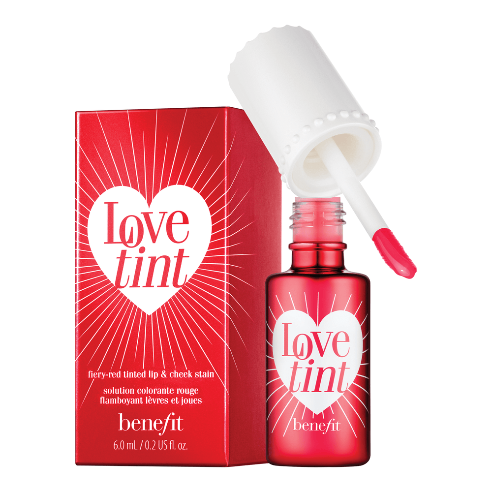 Lip love that lasts! The Lovetint Cheek & Lip Stain from Benefit is a fiery shade of red and the most passionate flush you can get from a bottle. Our precise lip applicator glides right on for a gorgeous look in seconds. Apply on lips and cheeks for kiss-proof, long-lasting vibrant colour youre sure to love!