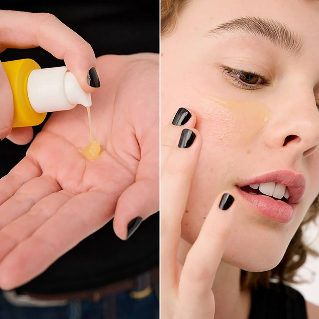 - Spread 2-3 pumps evenly onto face, then let dry 30 min.