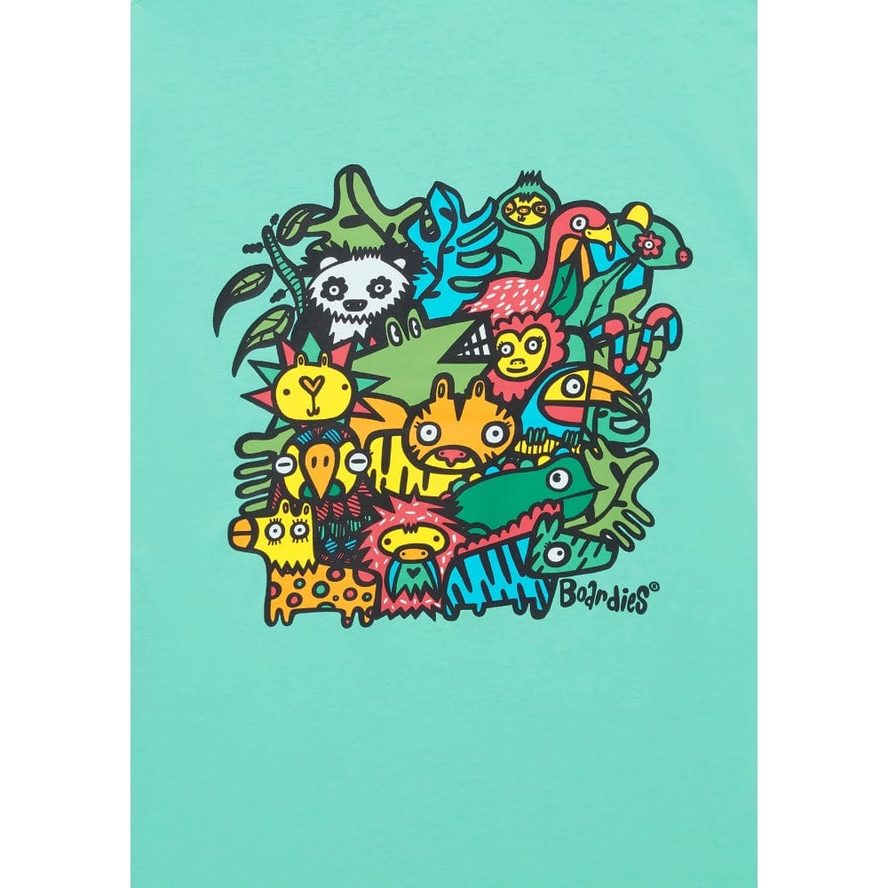 Step into the wild with the Boardies Kids Munday Jungle T-Shirt, crafted in collaboration with UK artist Kev Munday. This vibrant green tee combines bold, artistic jungle-themed designs with comfortable, durable fabric, making it perfect for active children. Expertly designed to inspire imagination while providing lasting wear, it’s an ideal choice for young adventurers ready to rule their own jungle.