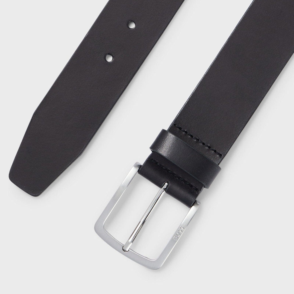 A 4cm belt crafted in vegetable-tanned Italian leather with a logo-engraved pin buckle by BOSS. For the best fit, we advise ordering a belt one size larger than your waist size.