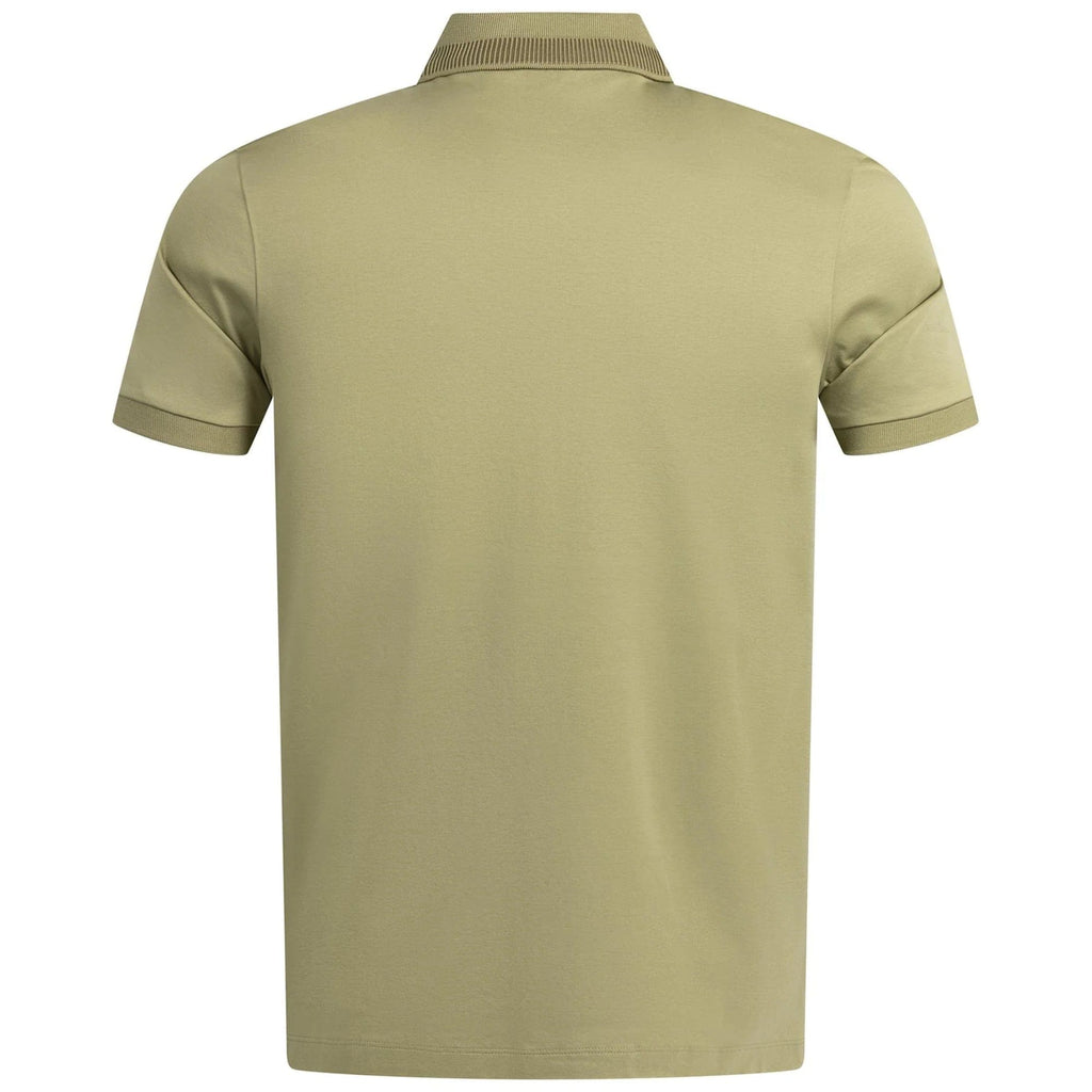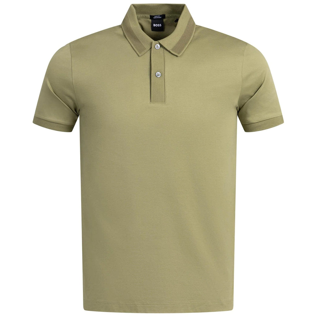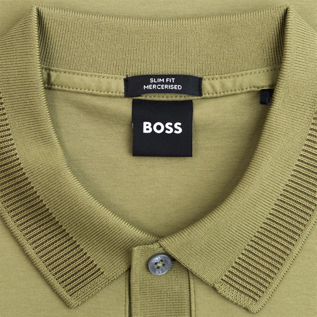 BOSS Mercerised Cotton Slim Fit Polo Shirt With Collar Stripe In Medium Green