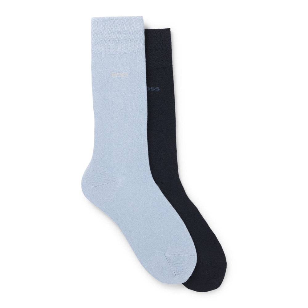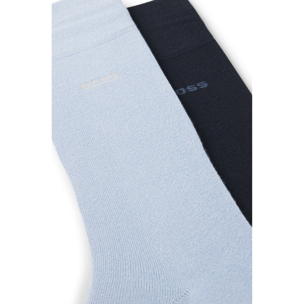 In a bamboo-rich blend, these two pairs of BOSS Menswear socks offer extra-soft comfort and breathable performance. Everyday regular length. Subtle logo details.