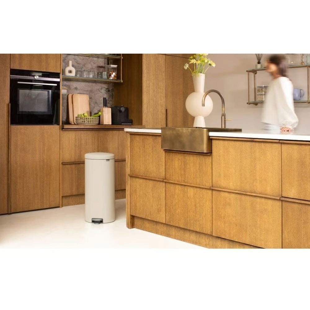 Brabantia’s 30 litre Pedal Bin NewIcon has an iconic design, and is a reliable worker too. Sturdy, and always standing strong because of its non-slip base and anti-tilting block. Thanks to the unique soft-closure feature, it closes smoothly. And of course this NewIcon Pedal Bin is hygienic, odour-proof, easy to open and to keep clean. Perfect for your kitchen or any other room that could use 30 litres of timeless design.