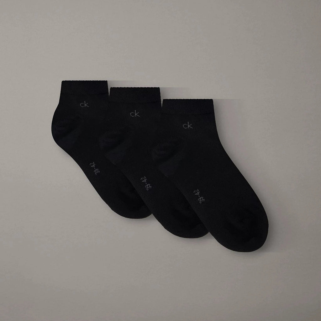 Calvin Klein 3 Pack Soft Cotton Stretch Ankle Socks In Black