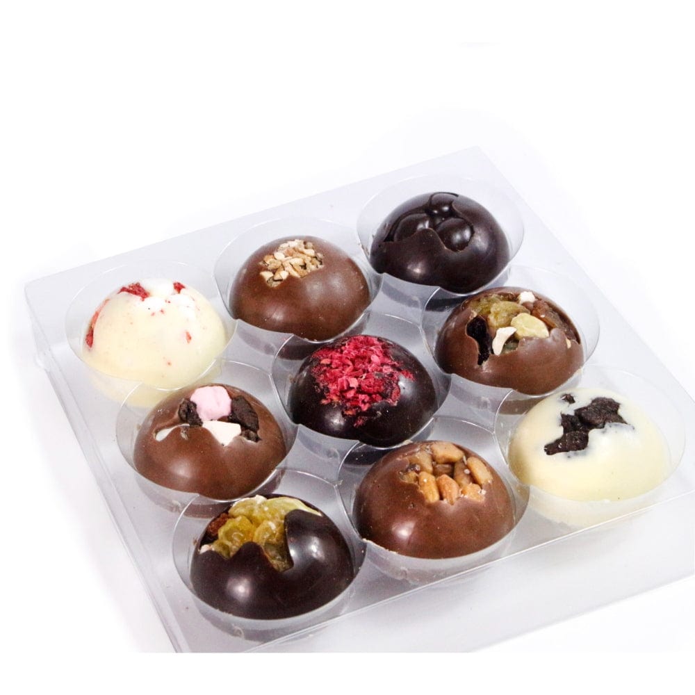 These luxurious solid chocolate domes are beloved worldwide and remain a top favourite! Each half-sphere is filled with delightful ingredients like fruits, nuts, toffee, marshmallows, and cookies, offering something for every taste.