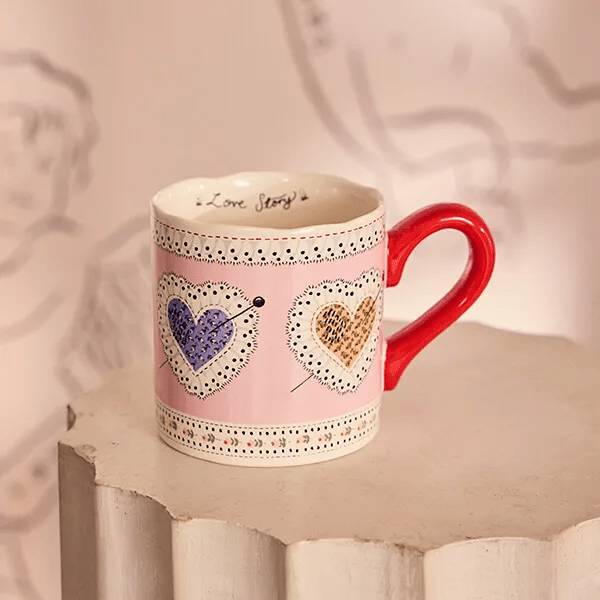 The Cath Kidston Love Story Shortie Mug is perfect for enjoying a relaxing cup of tea or coffee. Featuring a pretty lace and pink pattern with 'love story' decal inside the mug and is finished with a large handle for a comfortable grip.