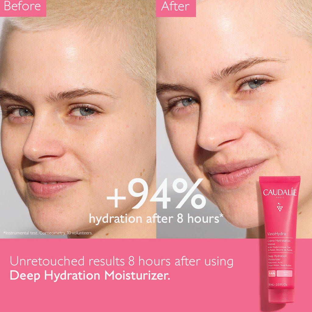 - VinoHydra Deep Hydration Moisturiser: Apply morning and night to cleansed skin (both to the face and neck) alone or directly after your serum or treatment step.