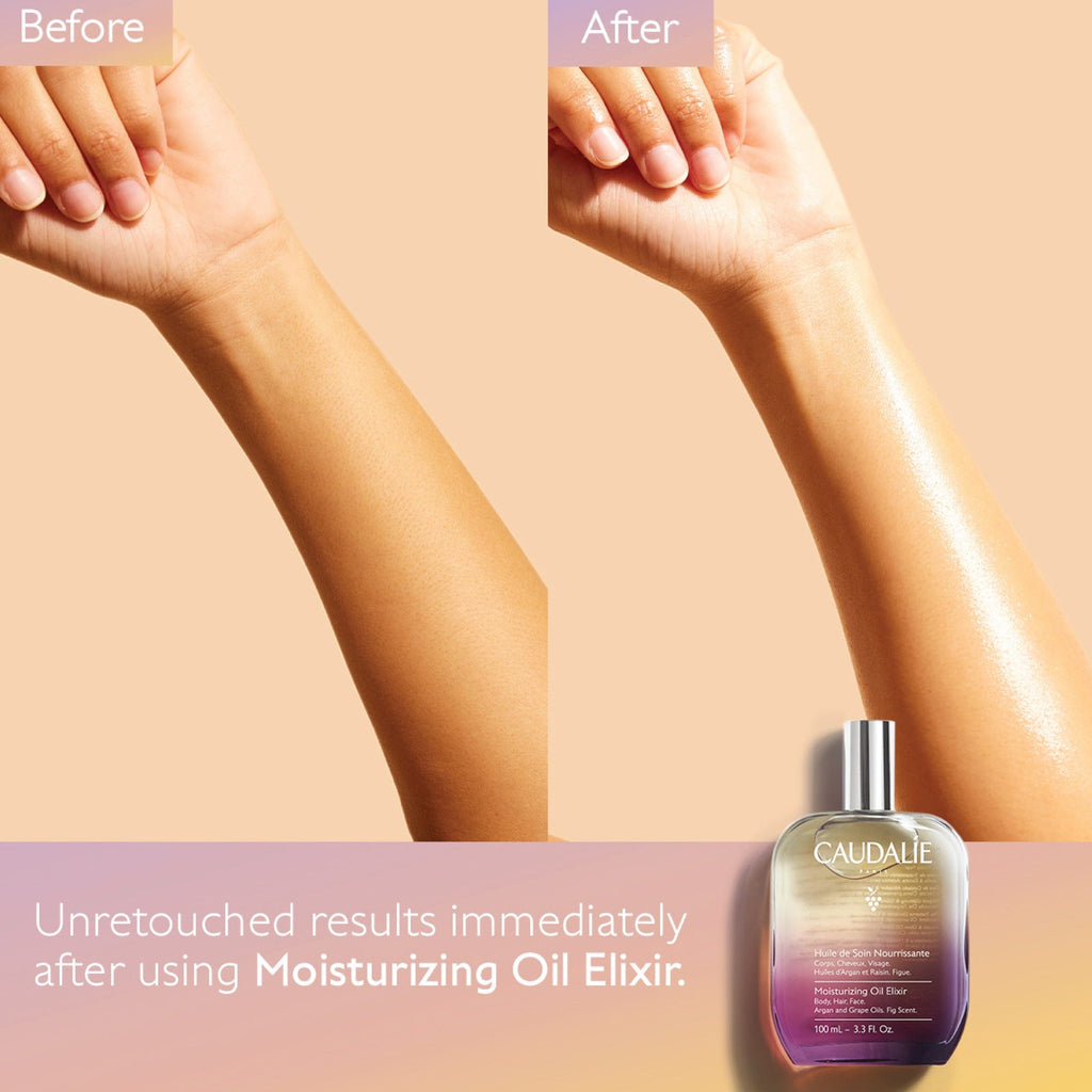 Moisturizing Oil Elixir 50 ml: ivitis vinifera (grape) seed oil, sesamum indicum (sesame) seed oil, caprylic/capric triglyceride, coco-caprylate/caprate, ethylhexyl palmitate, parfum (fragrance), butyrospermum parkii (shea) butter, helianthus annuus (sunflower) seed oil, argania spinosa kernel oil, opuntia ficus-indica seed oil, prunus amygdalus dulcis (sweet almond) oil, coumarin, solanum lycopersicum (tomato) fruit extract, rosmarinus officinalis (rosemary) leaf extract, tocopherol, linalool, limonene.(370/001)