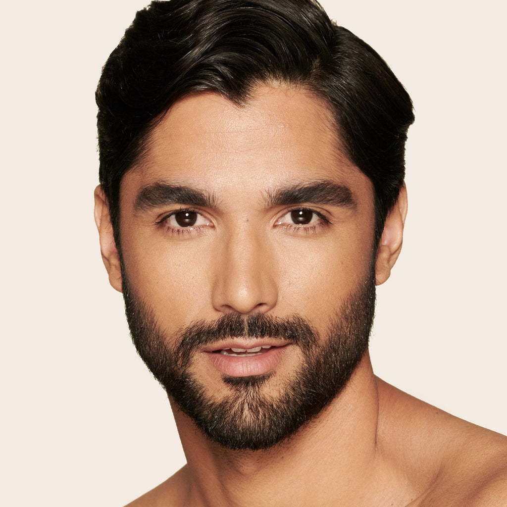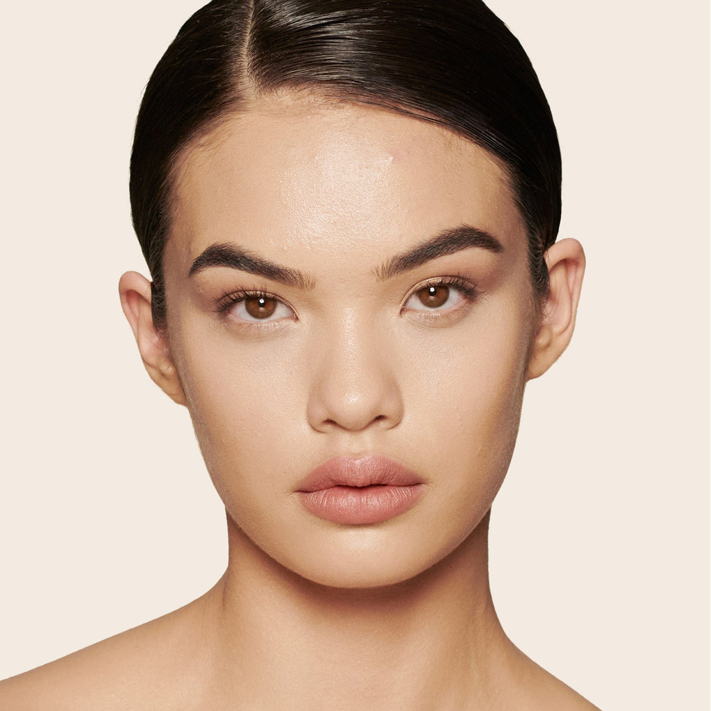 - With a shade that matches your skin tone, apply in diagonal lines upwards along the forehead, eyelids, under-eye area, side of the nose and bottom lip.