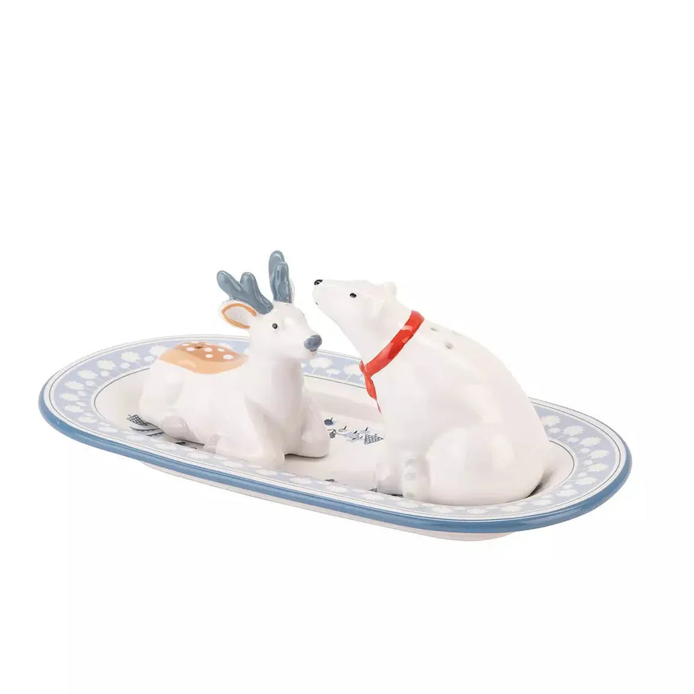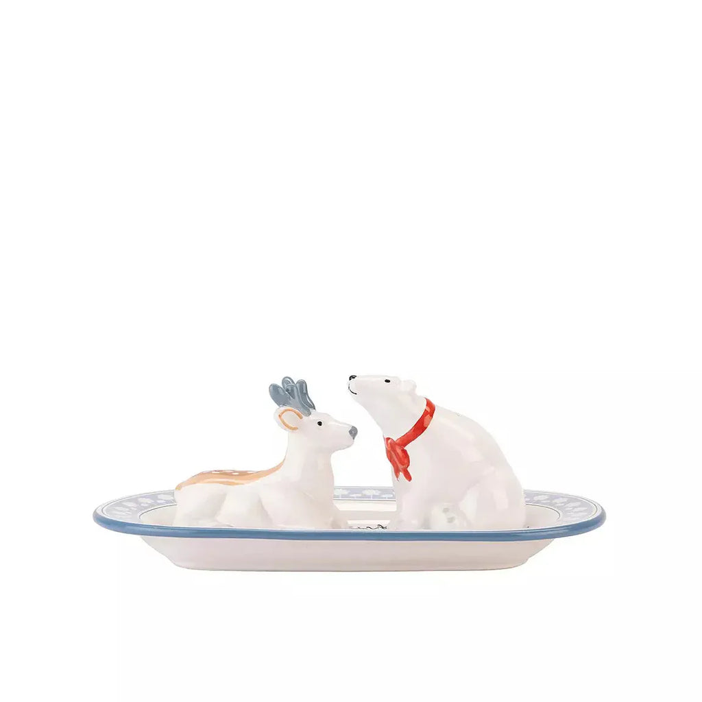 Add a playful touch to your holiday table with the Polar Bear and Reindeer Salt & Pepper Shakers. Featuring hand-painted details and a matching tray, this set is beautifully boxed for gifting.