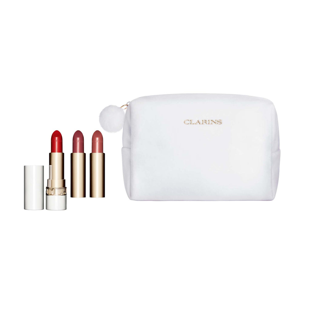 This luxurious set includes a trio of FULL SIZE Joli Rouge Refillable Lipsticks in three flattering shades (742 Joli Rouge, 732 Grenadine & 705 Soft Berry), along with a classic White lipstick case perfect for any occasion.