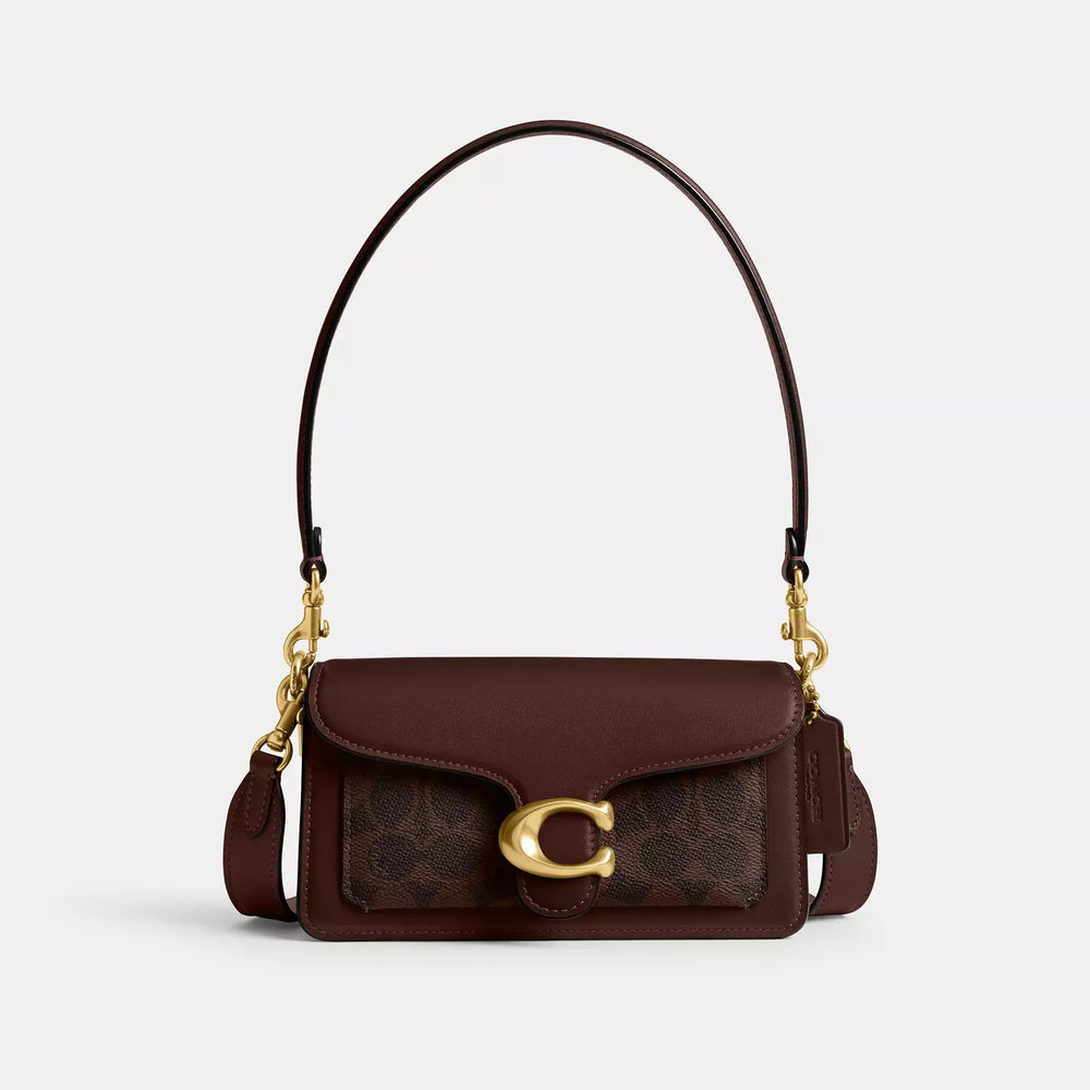 A modern take on an archival 1970s Coach design, this structured Tabby 20 is crafted in a mix of refined leather and polished pebble leather.