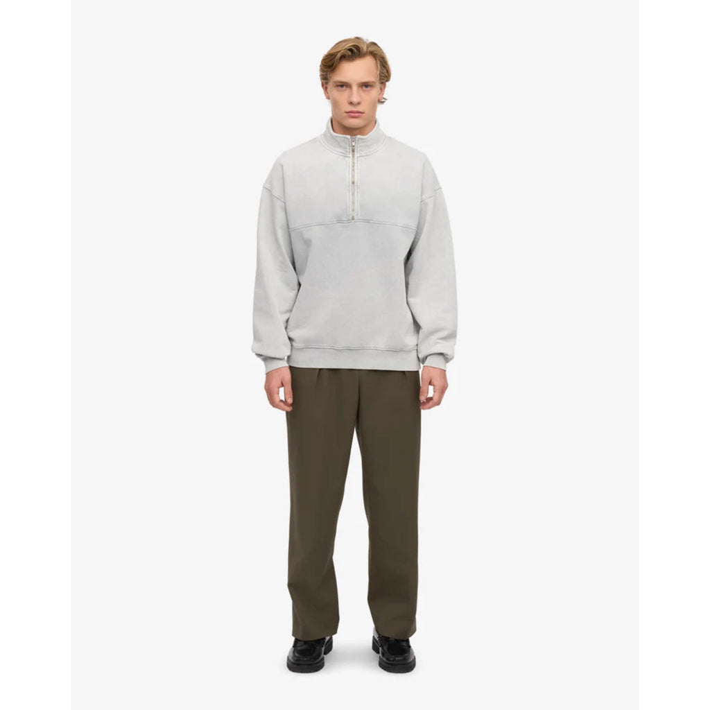 The oversized silhouette, thoughtfully designed for both comfort and elegance, allows ease of movement and presents a contemporary twist on a classic style.The quarter-zip design offers a sophisticated alternative to traditional pullovers, ideal for both casual and semi-formal occasions.