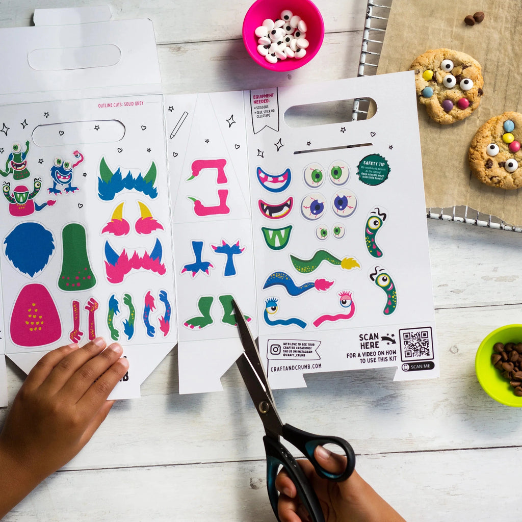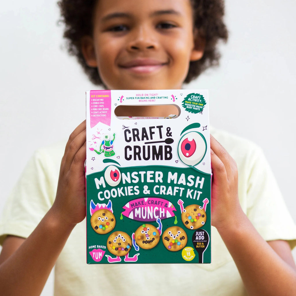 It’s a monstrously goood bake and craft activity in one fun packed box! Bake a batch of scrummy chocolate chip eyeball cookies and craft them into little monsters with the monster body parts on the inside of the pack.