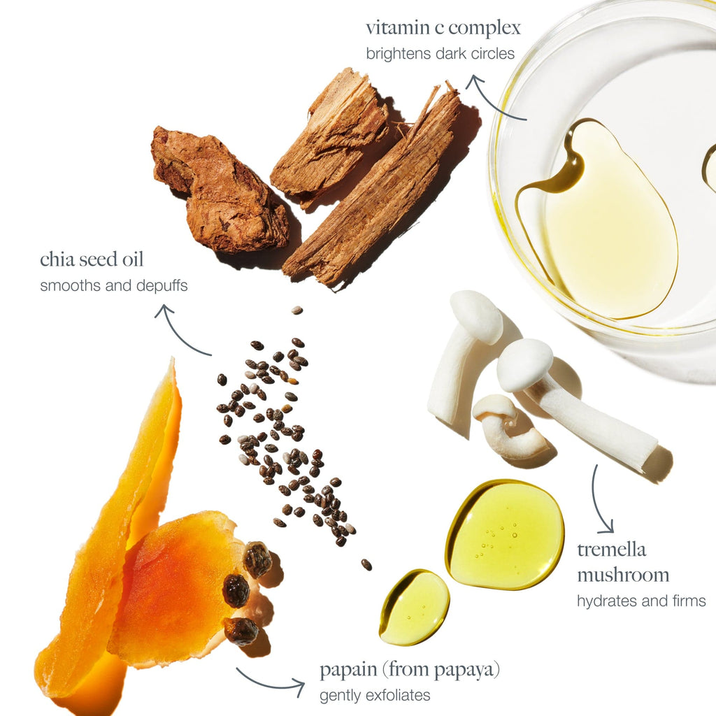 Water/Aqua/Eau, Butylene Glycol, Propanediol, Glycerin, C15-19 Alkane, Salvia Hispanica Seed Oil, Sodium PCA, Trehalose, Poria Cocos Polysaccharide, Papain, Dunaliella Salina Extract, Aminopropyl Ascorbyl Phosphate, Terminalia Arjuna Extract, Tremella Fuciformis Sporocarp Extract, Ascorbyl Methylsilanol Pectinate, Palmitoyl Tripeptide-5, Sodium Hyaluronate, Phytosterols, Algin, Citrus Grandis (Grapefruit) Peel Oil, Phytosteryl Oleate, Tocopherol, Serine, Oleic Acid, Inositol, Helianthus Annuus (Sunflower) Seed Oil, Betaine, Carrageenan, Panthenol, Dipotassium Glycyrrhizate, Methylpropanediol, Proline, Xylitol, Calcium Gluconate, Pantolactone, Lecithin, Xanthan Gum, Pentylene Glycol, Aminomethyl Propanol, Caprylyl Glycol, Polyacrylate-13, Acrylates/C10-30Alkyl Acrylate Crosspolymer, Tetrasodium Glutamate Diacetate, Polyisobutene, Ethylhexylglycerin, Sodium Benzoate, Citric Acid, Gluconolactone, Polysorbate 20, Potassium Sorbate, Carbomer, 1,2-Hexanediol, Sodium Hydroxide, Limonene, Phenoxyethanol.