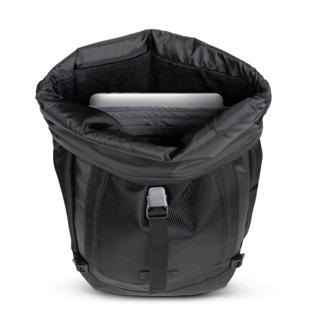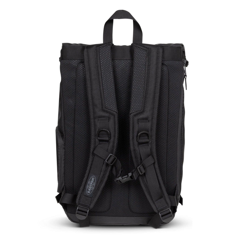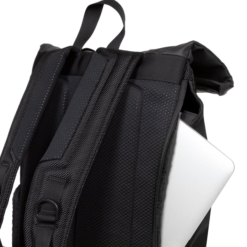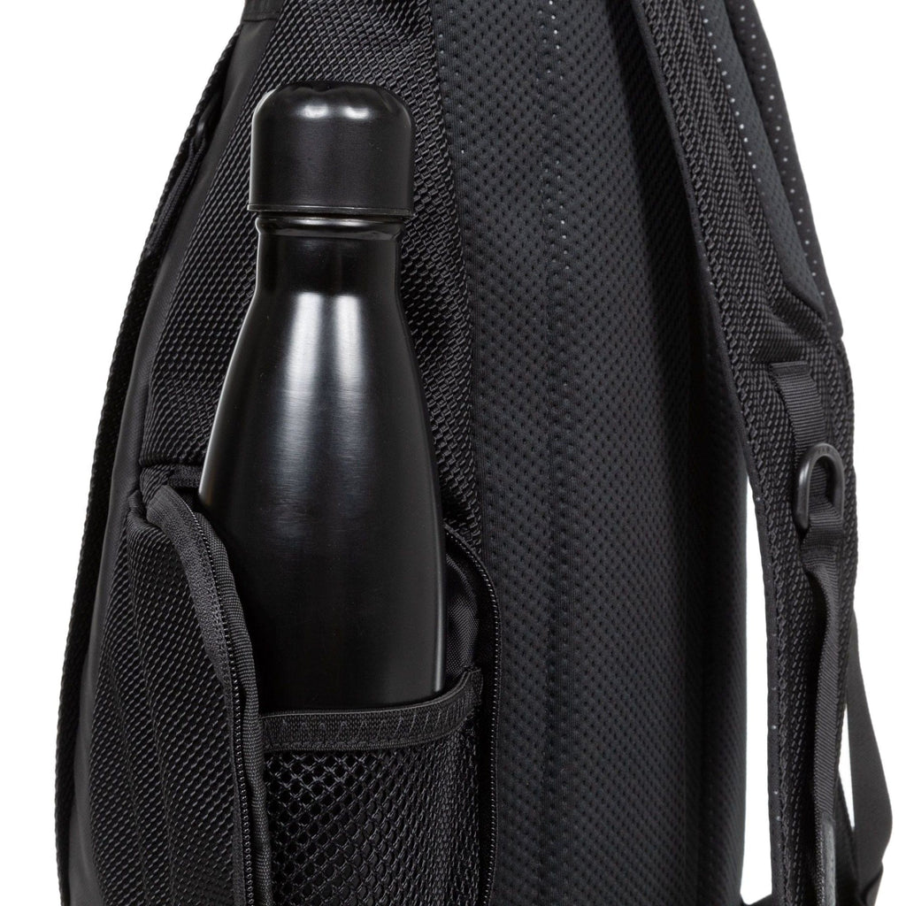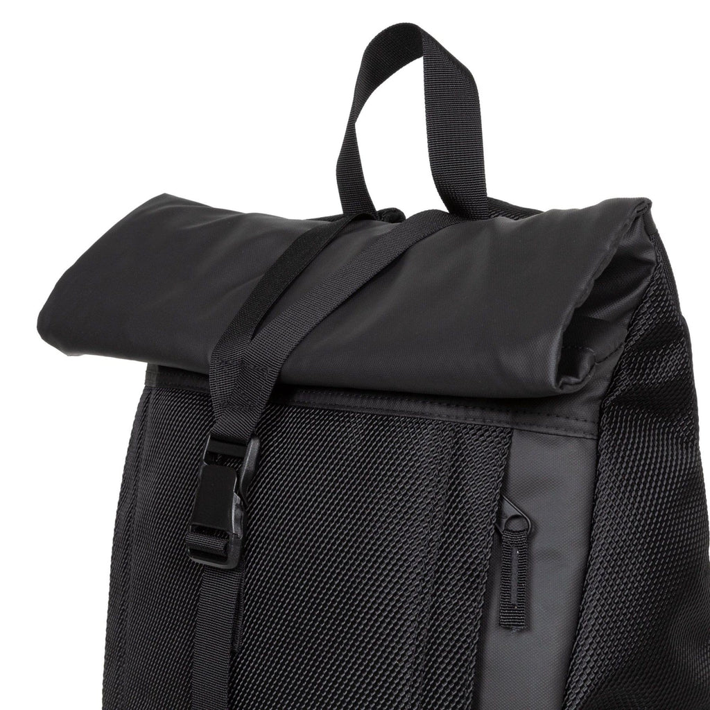- Main compartment with a roll-top opening and zip-fastening side opening