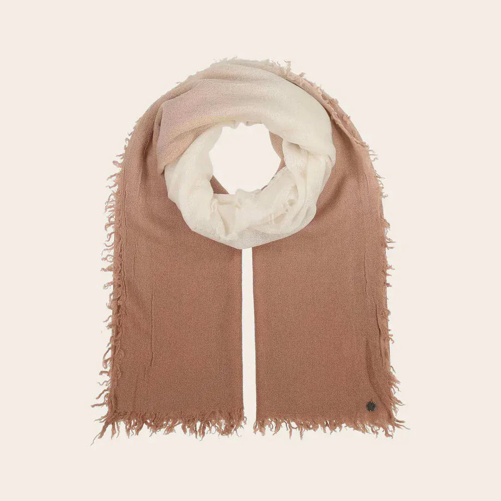 This delicate scarf made of pure wool measures 80 x 190 cm and features a playful ombré color gradient. Thanks to the alternating colors, you can create different looks depending on how you wear it - sometimes in one color, sometimes in two colors.