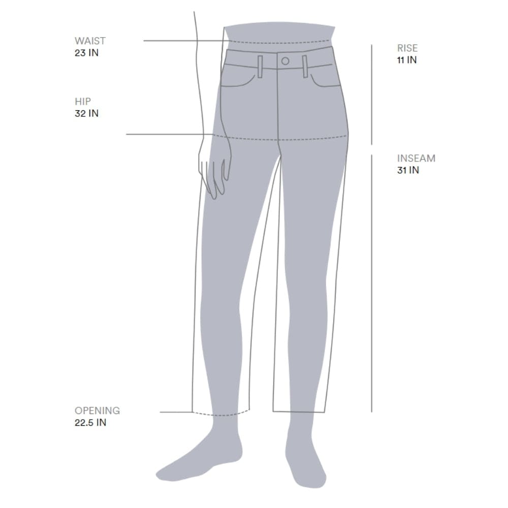 11" Front Rise/31" Inseam/22.5" Leg Opening