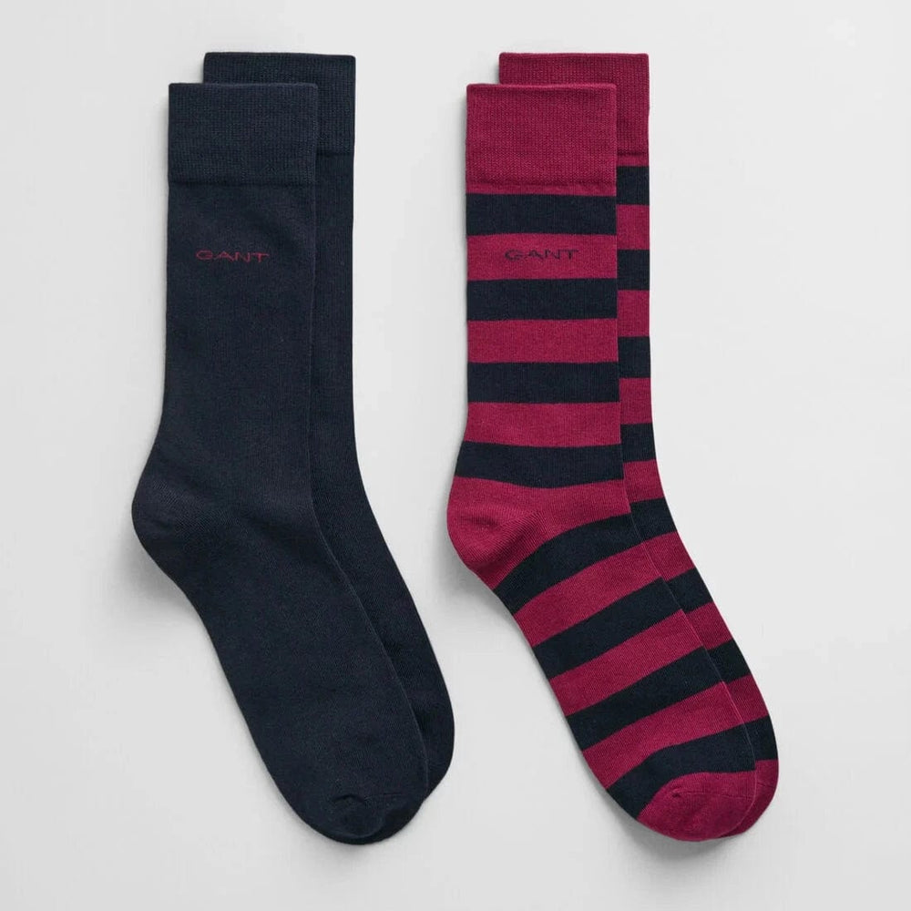 This 2-pack of socks is crafted from combed cotton and includes one bar striped design and one classic solid colourway. The socks feature a double welt hem and a GANT intarsia logo at the ankle.