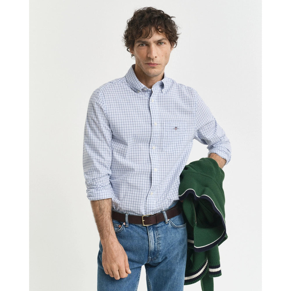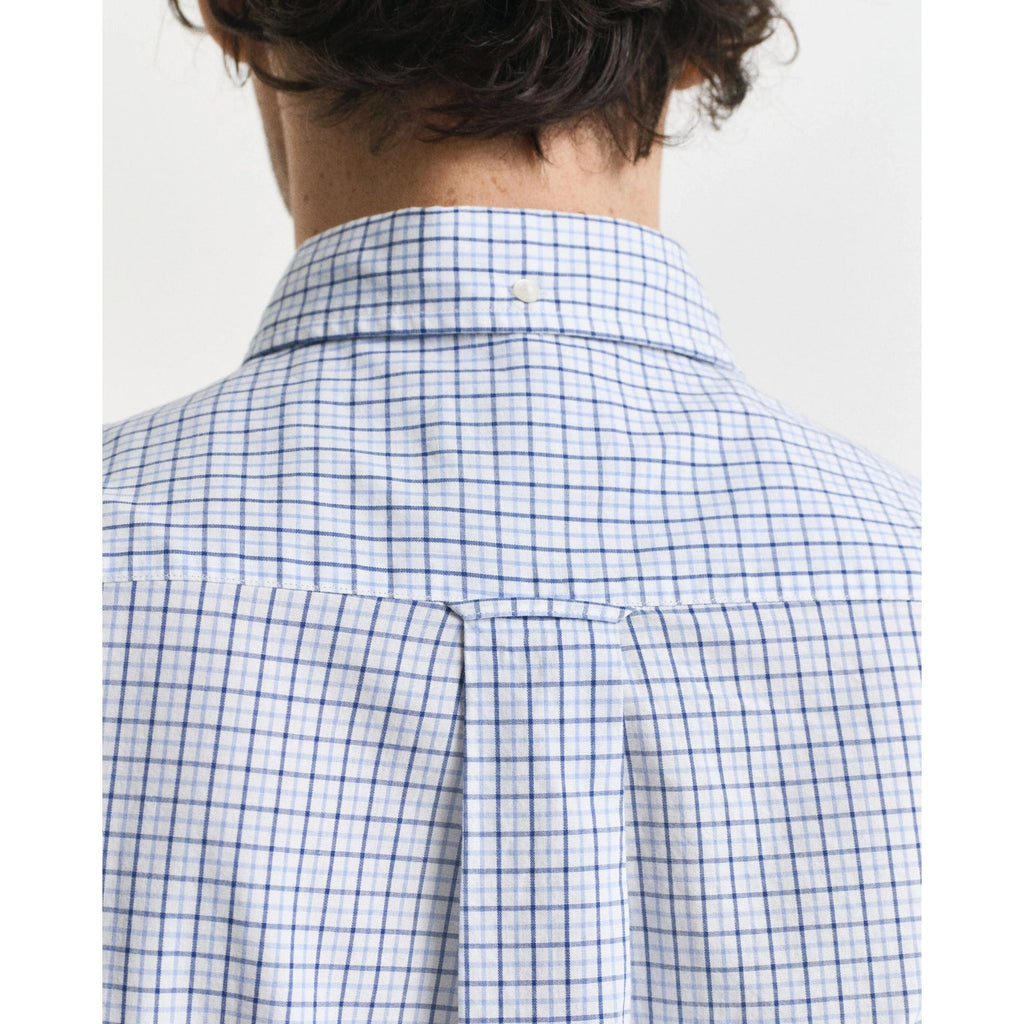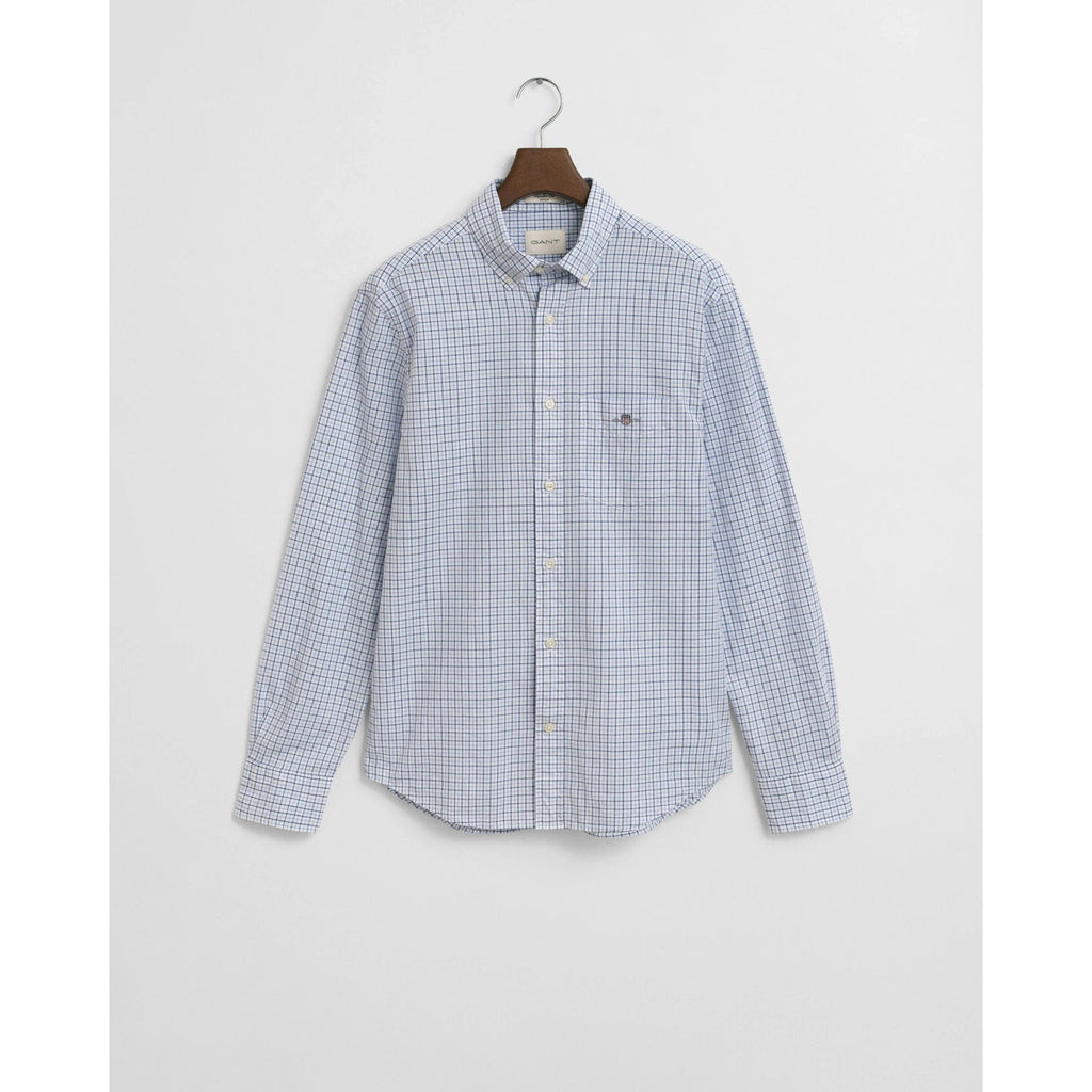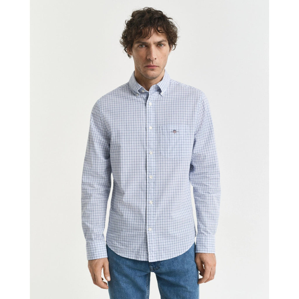 Crafted in a durable cotton poplin, this shirt is essential to any preppy wardrobe. Patterned with yarn-dyed micro checks, this shirt is cut for a regular fit and features a button-down collar, curved hem and a box pleat with our signature locker loop at the back. It is accented with an '80s-inspired GANT shield graphic embroidered at the chest pocket.