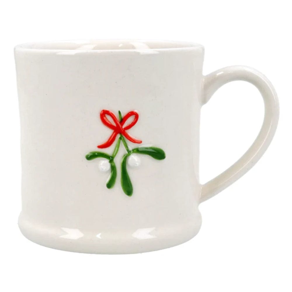 This Gisela Graham stoneware mini mug features a delicate bow and mistletoe design, adding a cute and festive touch to your Christmas kitchen and dining table.