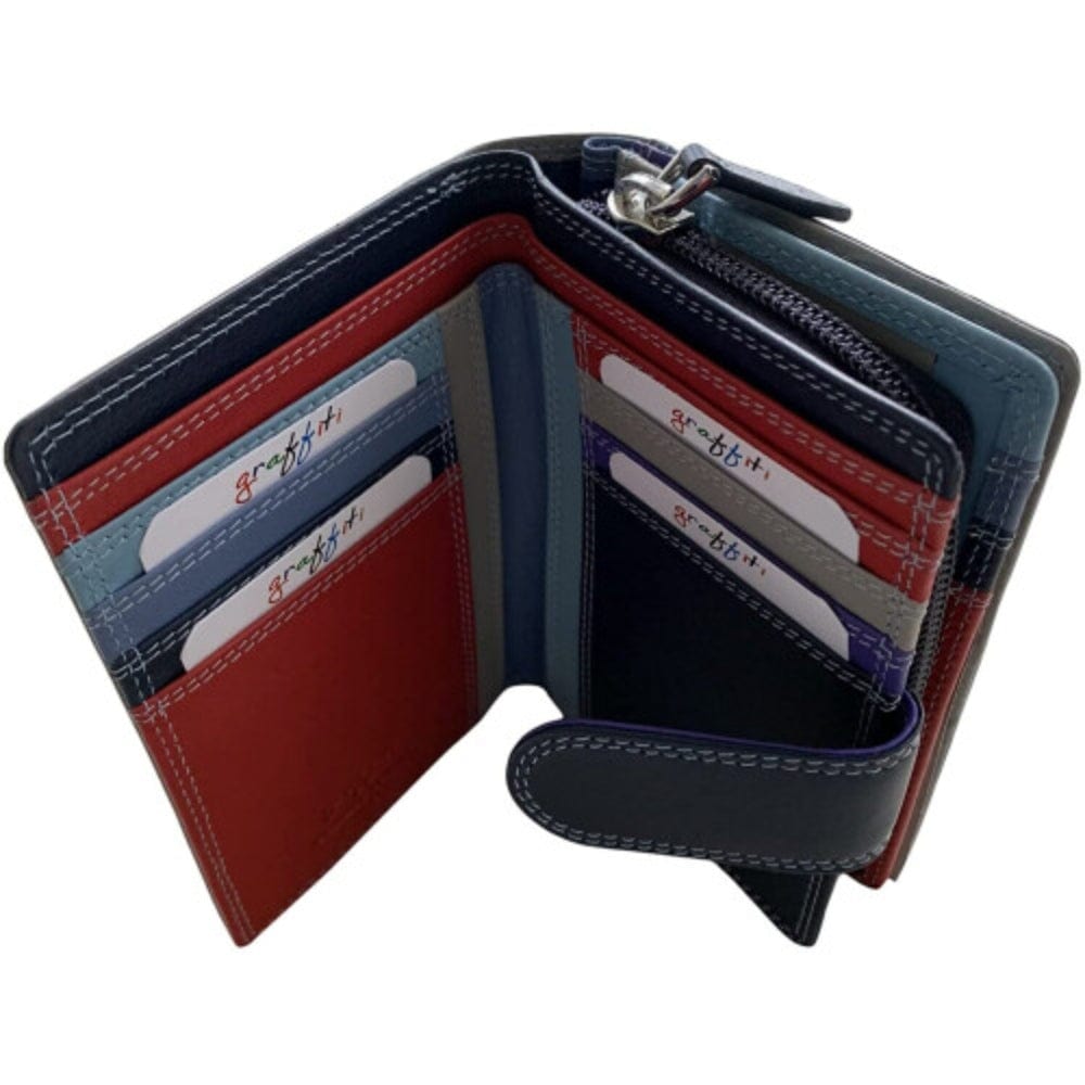 This compact RFID-protected leather purse from the Golunski Graffiti Range offers exceptional organization in a sleek 9cm x 17cm x 1.5cm design. Crafted from premium smooth leather, it features a spacious zipped coin compartment, 10 credit card slots, an identity window, and multiple pockets for notes and receipts. The integrated RFID protection technology effectively shields your sensitive information from unauthorized scanning, preventing identity theft and digital fraud.
