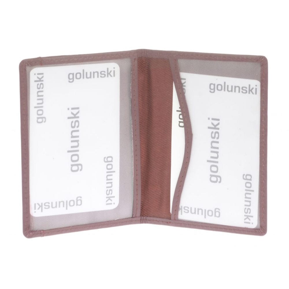 This compact 7 x 10cm travel card holder features premium full cow leather in rich cherry brown. Expertly crafted with practical functionality, it includes an external receipt pocket and internal identity window for efficient organization of your essential cards and identification while traveling.