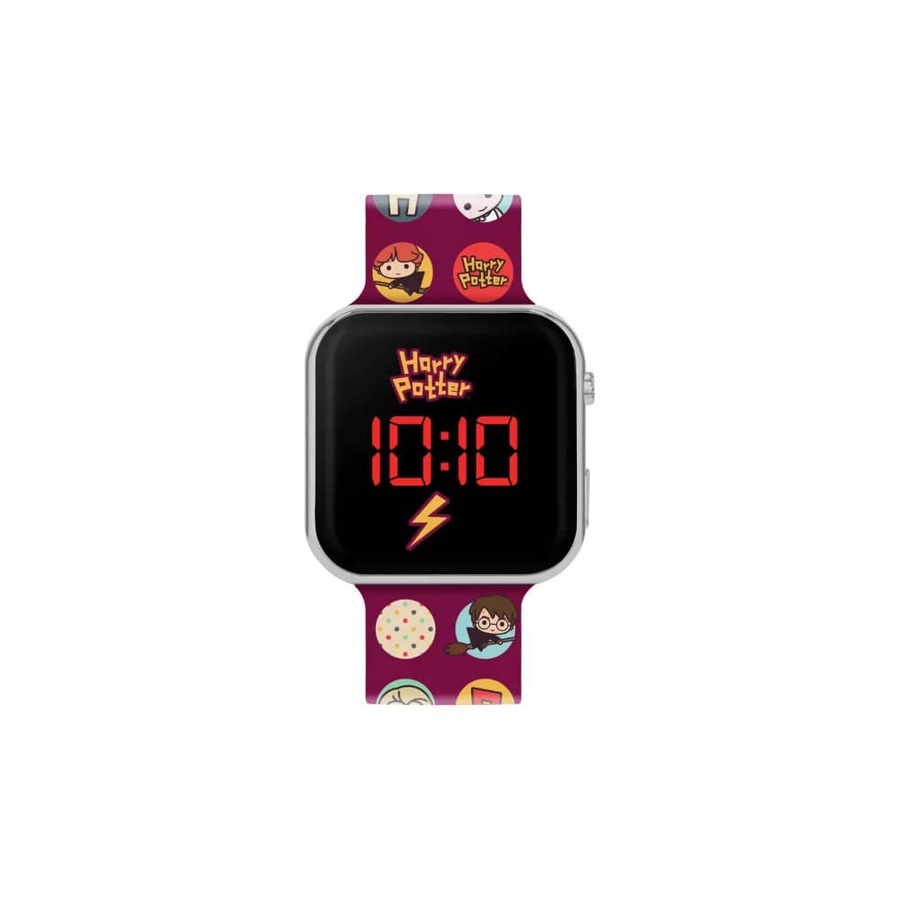 Harry Potter LED watch with silver plastic casing, digital light up display and fun printed strap design with traditional buckle fastening. Packaged on a branded backing card and comes with a one year guarantee.