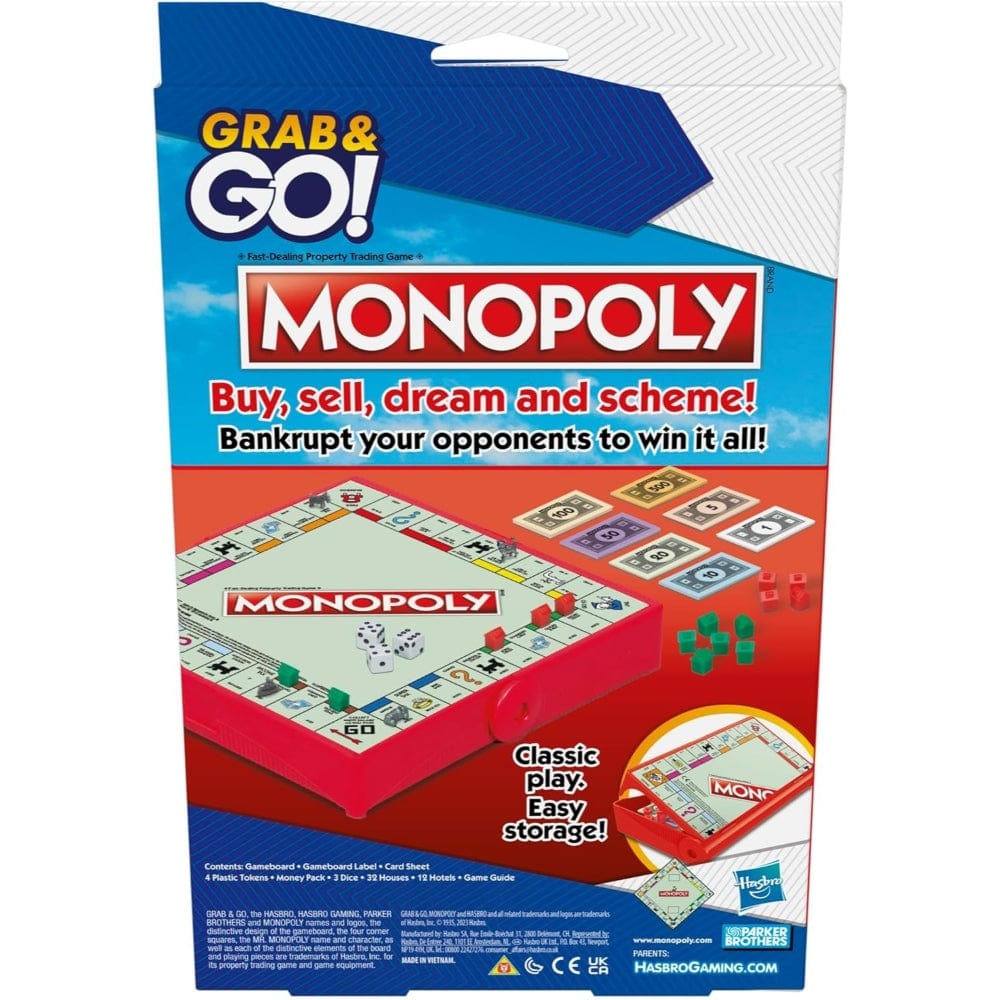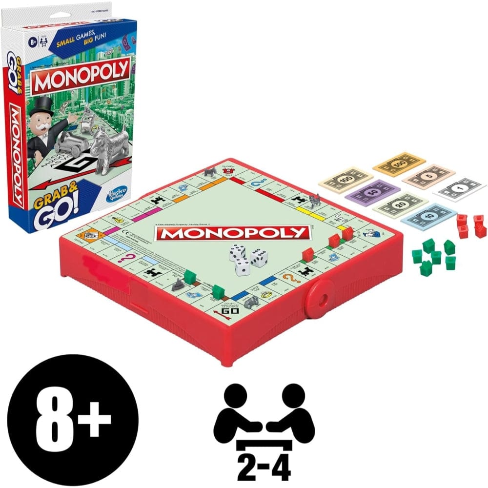 Enjoy classic Monopoly in a compact, travel-friendly format designed for 2 to 4 players. This portable game captures the essence of buying, selling, and trading properties, with Chance and Community cards adding excitement. Ideal for family play, it suits ages 8 and up and is perfect for entertainment on the go.