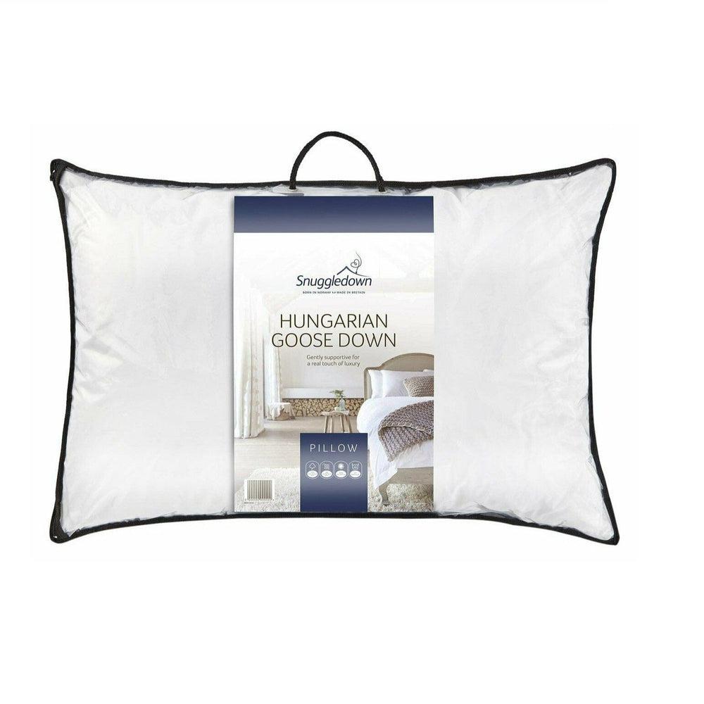 The Snuggledown Hungarian Goose Down pillows are luxuriously soft, offering you just the right amount of gentle sink-in support as you sleep. The pillows are filled with the perfect blend of 80% Hungarian goose down and 20% Hungarian goose feather surrounded by a super fine 300 thread count cotton jacquard fabric cover. A real touch of luxury you can feel.