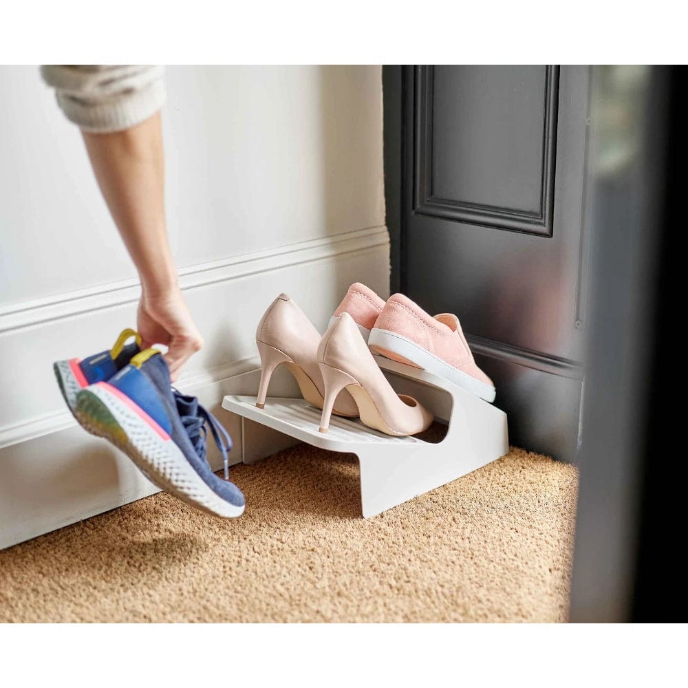 Make shoe storage stylish and simple with the Joseph Joseph Shoe-In™ Space-saving Ecru Shoe Rack. Its clever tiered design tucks away up to three pairs of shoes or boots, keeping your space neat and tidy. Ridged surfaces keep footwear firmly in place, while the compact size fits perfectly in cupboards, wardrobes, or hallways. Easy to clean and ready to handle all kinds of shoes, this rack turns clutter into charm with a playful twist.