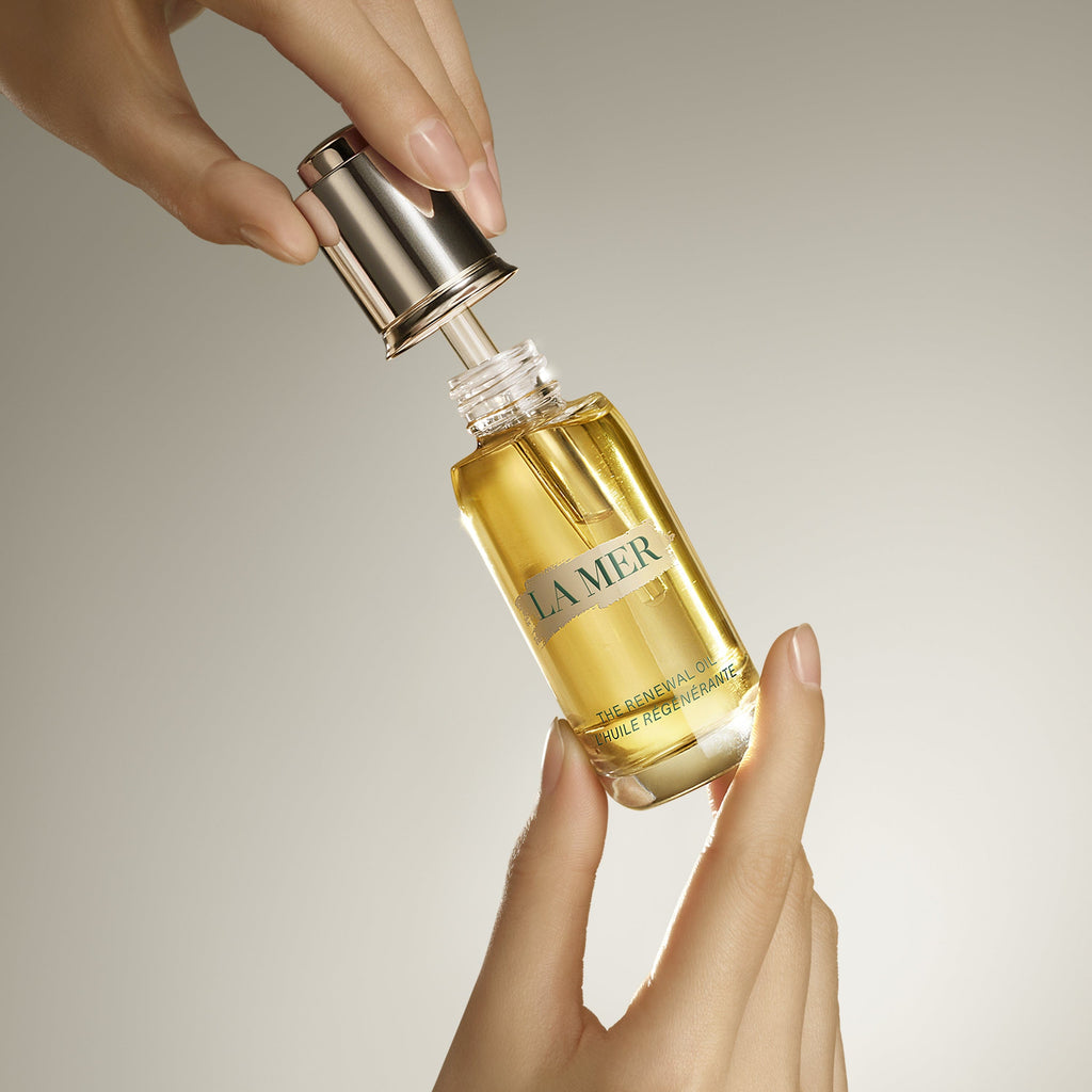 HOW TO USE: Scoop a pearl-size amount of Crème de la Mer using the spatula. Shake the Renewal Oil and add a few drops to the Crème de la Mer . Warm and mix between fingertips until translucent to release Miracle Broth™ and press gently into the face and neck, morning and night.