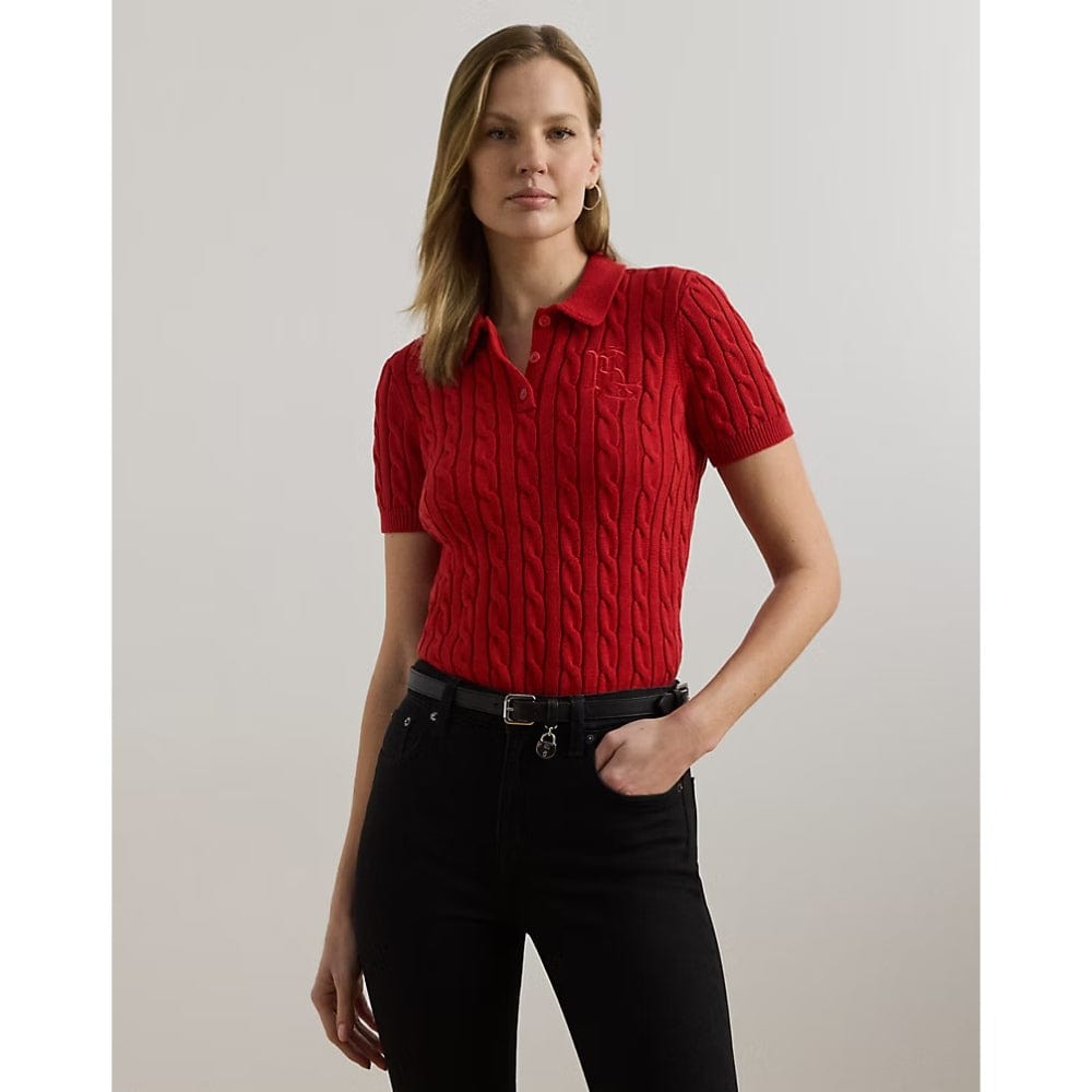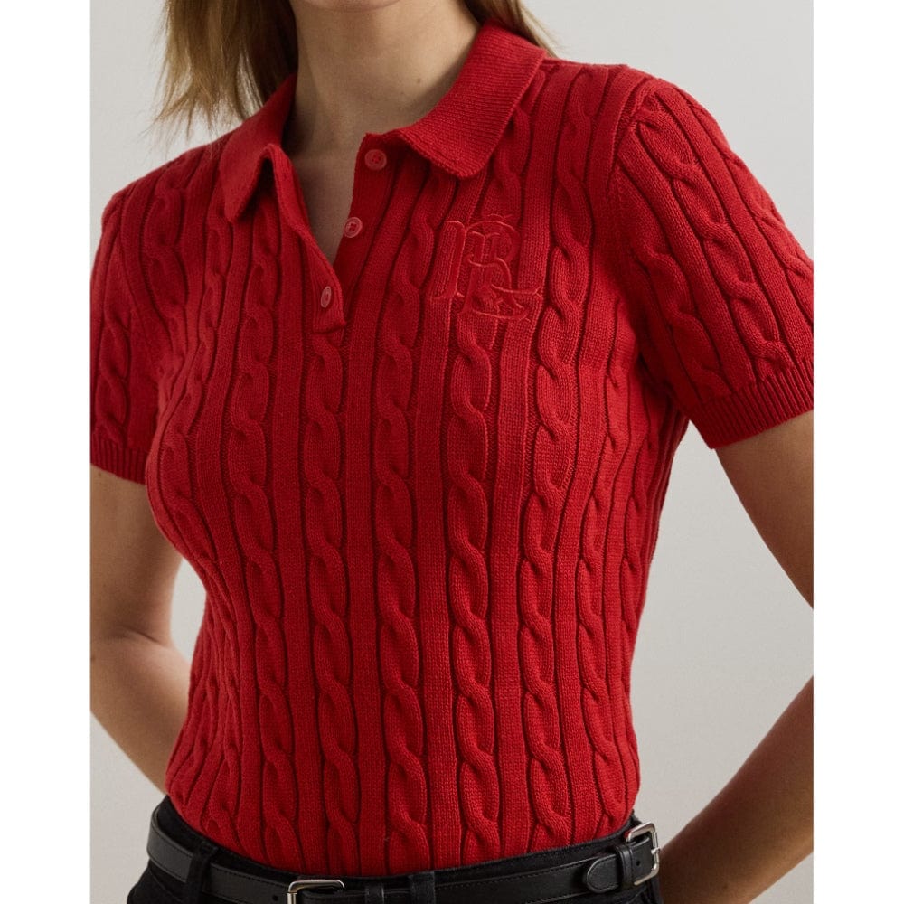 Crafted with combed cotton for a soft hand, this piece unites a timeless Polo shirt silhouette with the comfort of a cable-knit jumper. It's accented by Lauren's signature embroidered logo and "LRL"-engraved buttons.