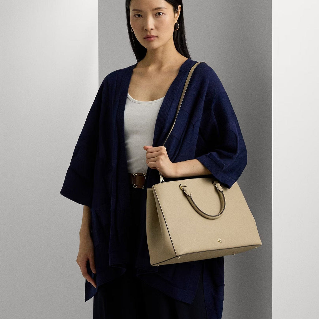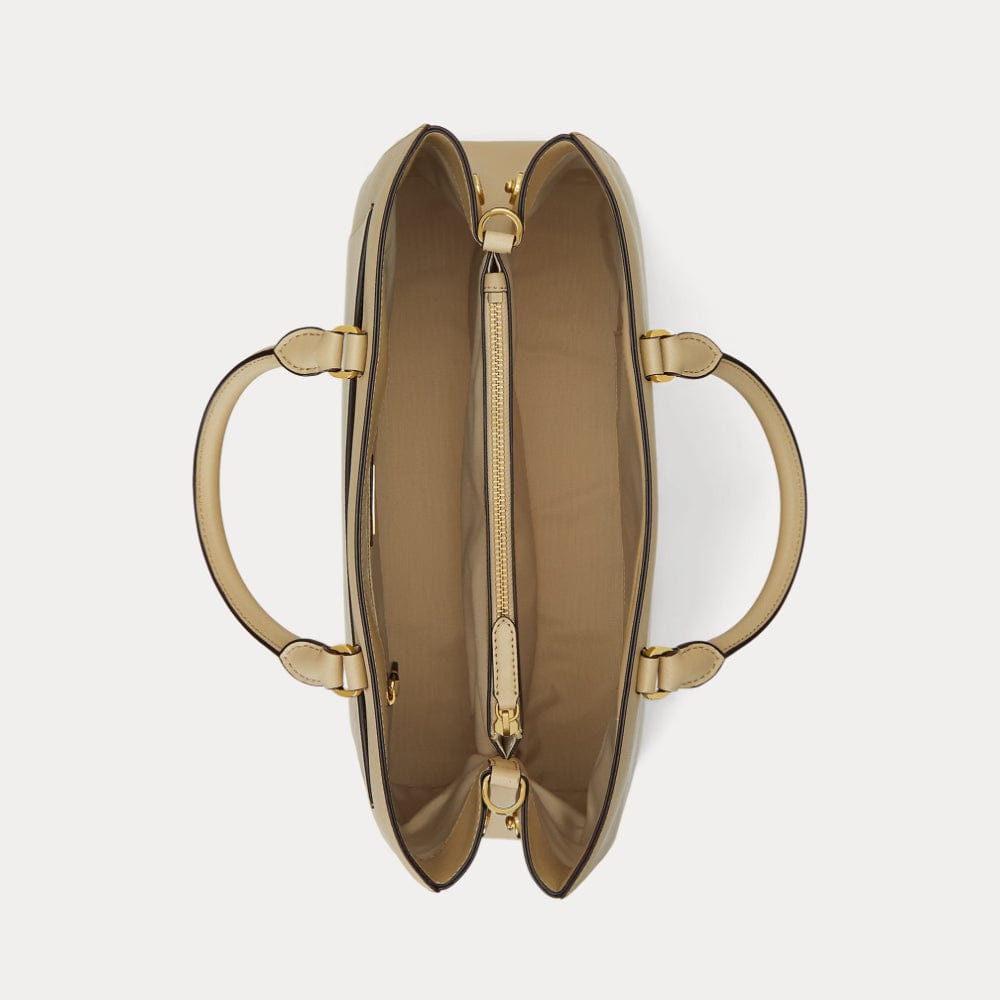 Lauren Ralph Lauren Crosshatch Leather Large Hanna Satchel In Birch Tan