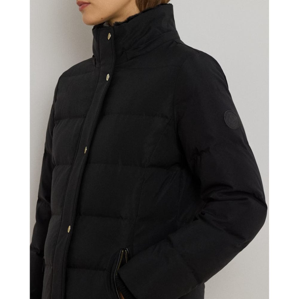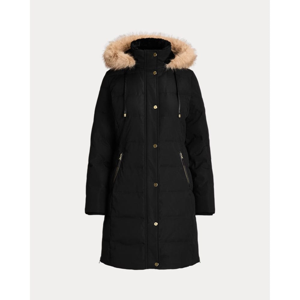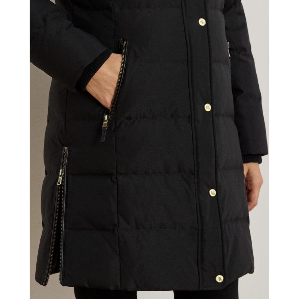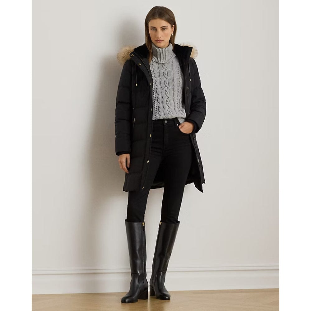 Equal parts stylish and practical, this channel-quilted coat is designed with a detachable, faux fur-trimmed hood, a water-resistant shell and cosy 450-fill-power down to keep you dry and warm. Front and back princess seams enhance this style’s streamlined silhouette, while “LRL”-engraved metal snaps add signature style.