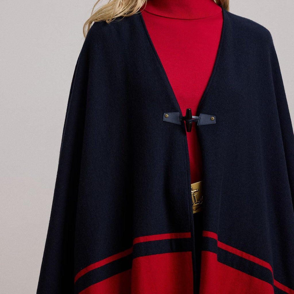 Lauren Ralph Lauren Intarsia-Knit Two-Tone Poncho In Navy / Red