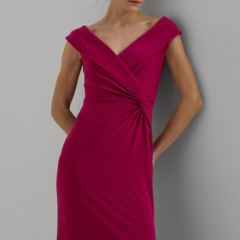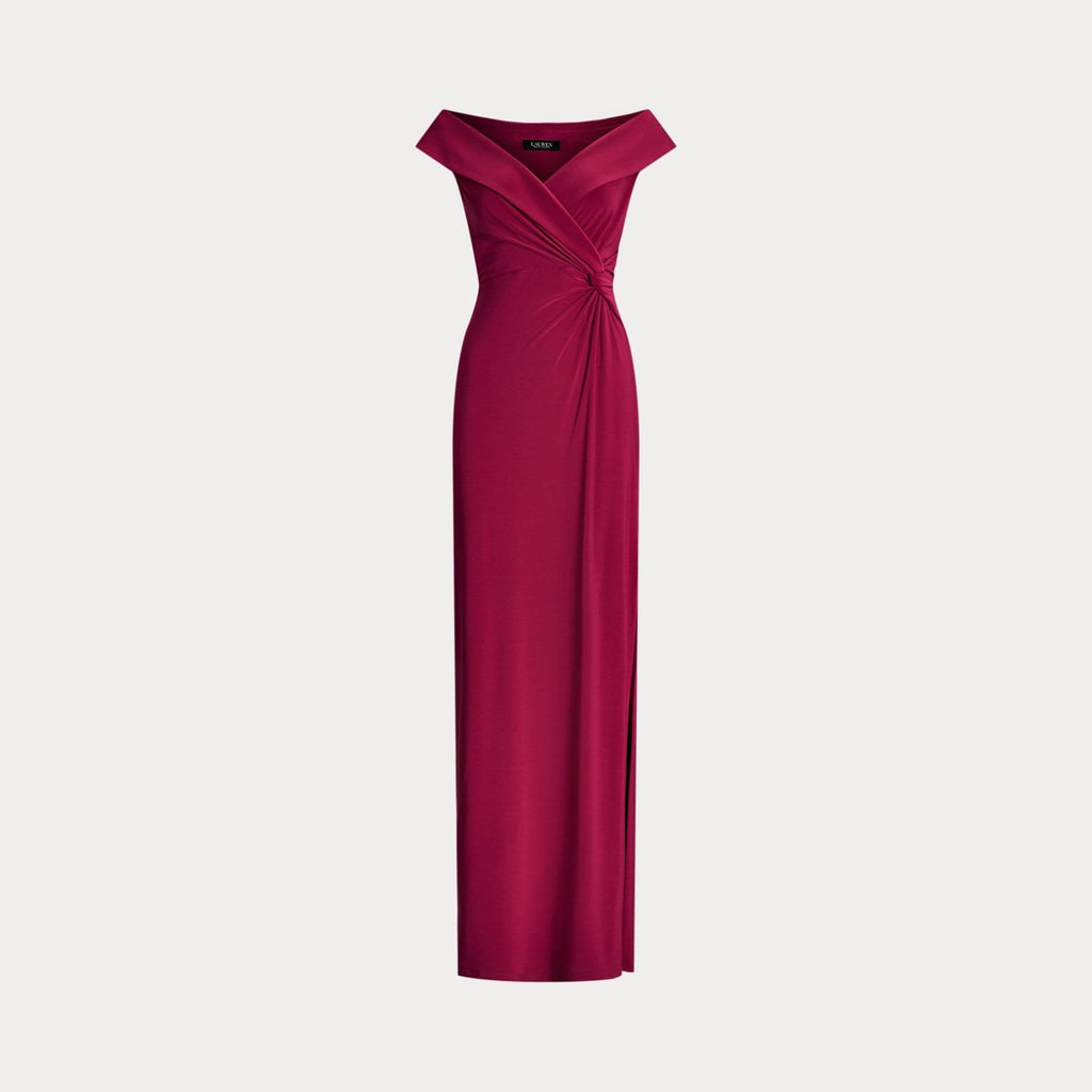 Lauren Ralph Lauren Jersey Off-the-shoulder Gown In Fuchsia Berry