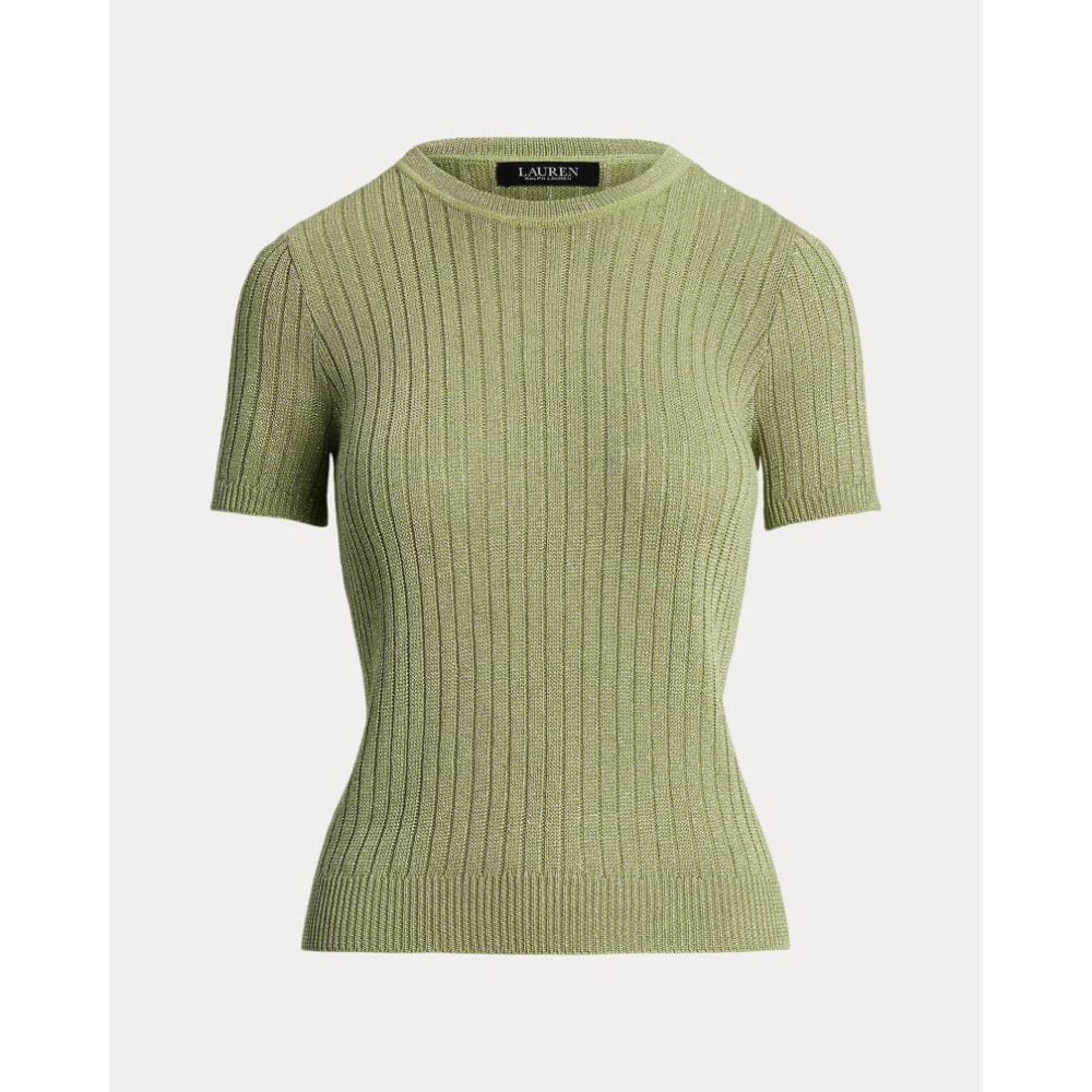 Lauren Ralph Lauren Metallic Rib-Knit Short-Sleeve Jumper In Light Olive