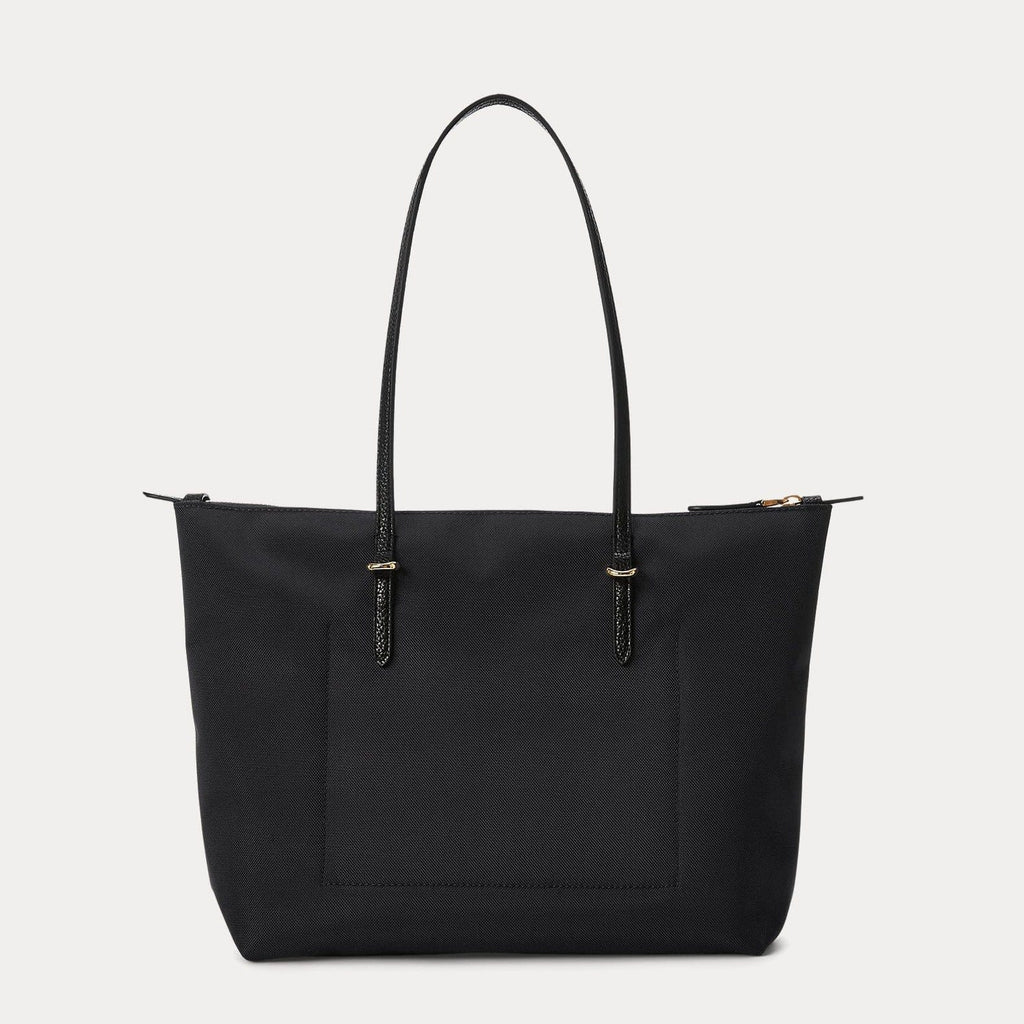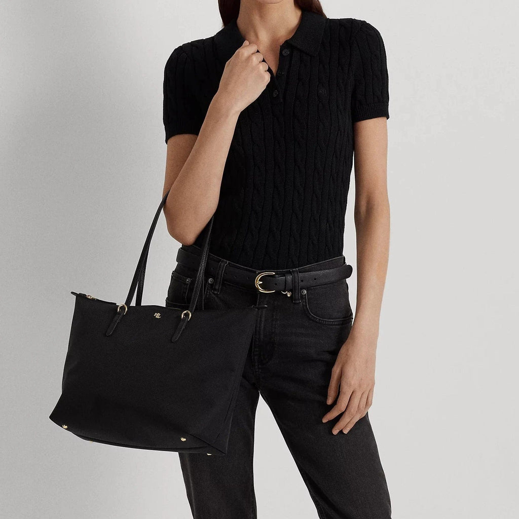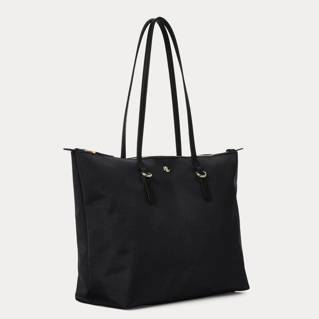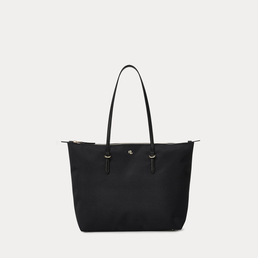 Crafted with durable nylon and designed with sumptuous faux-leather straps, the medium Keaton tote features a spacious silhouette, perfect for carrying the day's essentials. A versatile must-have, it's finished with an "LRL" metal logo on the front for signature style.