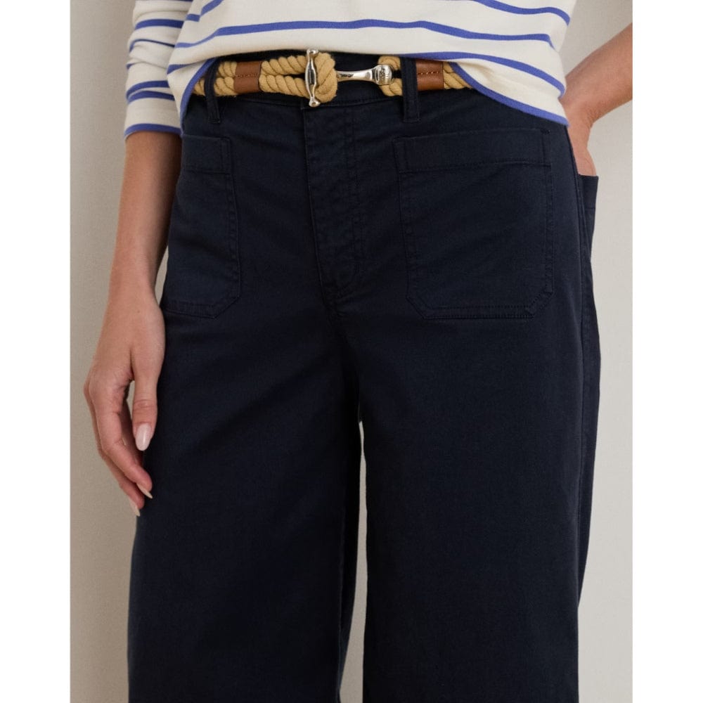 Made from stretch cotton chino, these stylish trousers offer a high-rise fit that sits above the natural waist. Designed with a wide-leg, cropped silhouette, they provide a tailored shape that is fitted through the hips and relaxes through the thigh for comfortable movement and a modern look.