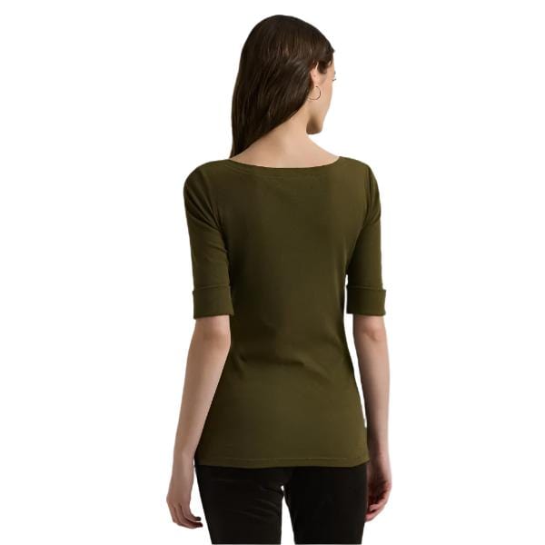 Lauren Ralph Lauren Stretch Cotton Boatneck Tee In Botanic Green