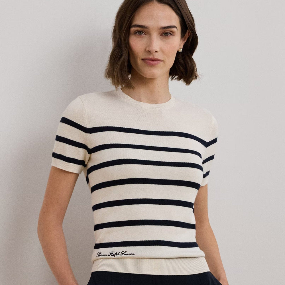 Lauren Ralph Lauren Striped Short-Sleeve Jumper In Cream/Navy