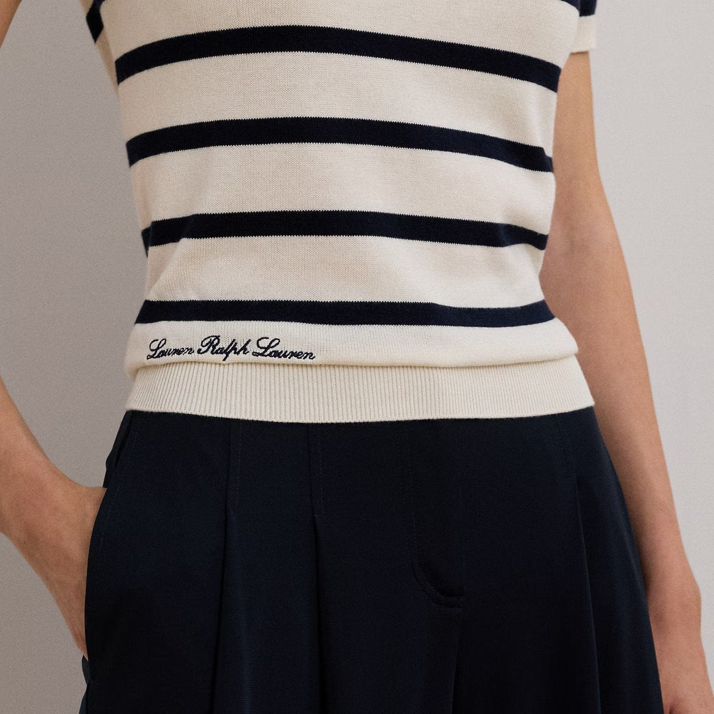 Featuring nautical-inspired stripes and Lauren's signature embroidered logo on the hem, this jumper's short-sleeve design and lightweight cotton-blend construction make it a must-have for transitional dressing.