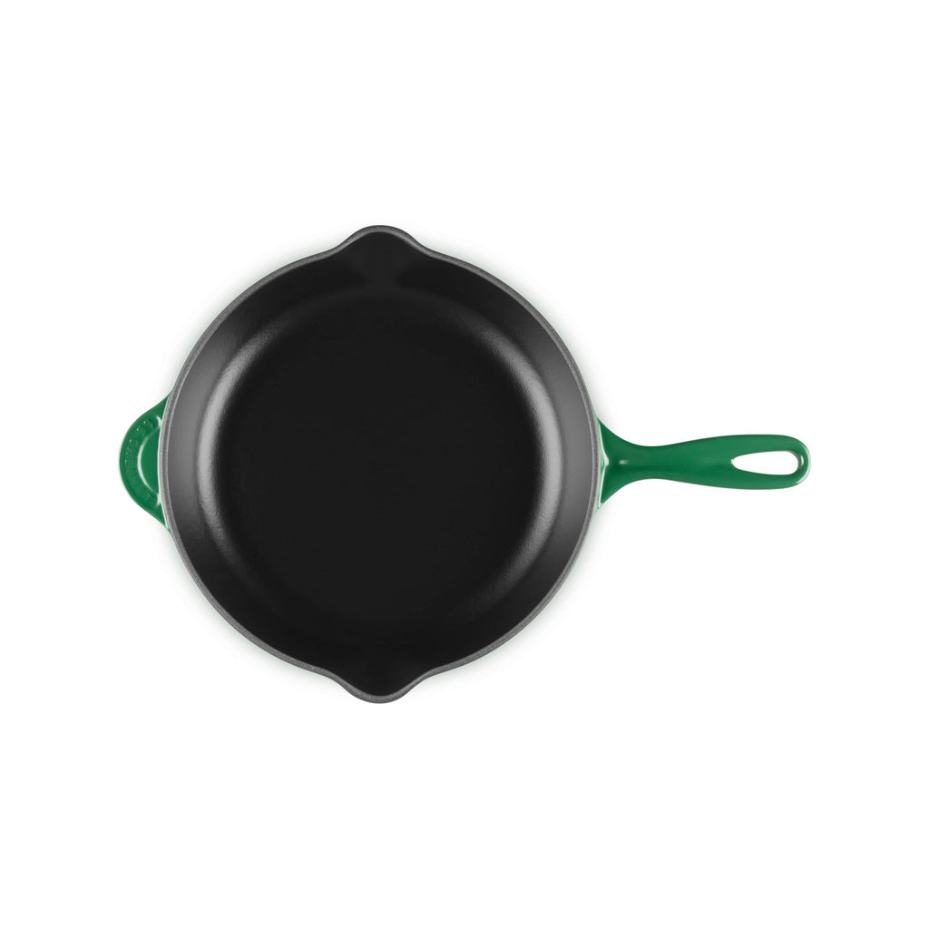 Le Creuset's Signature Skillet features a convenient helper handle for easier lifting and added control when moving between hob, oven and table. There are spouts on two sides allowing for drip-free pouring.