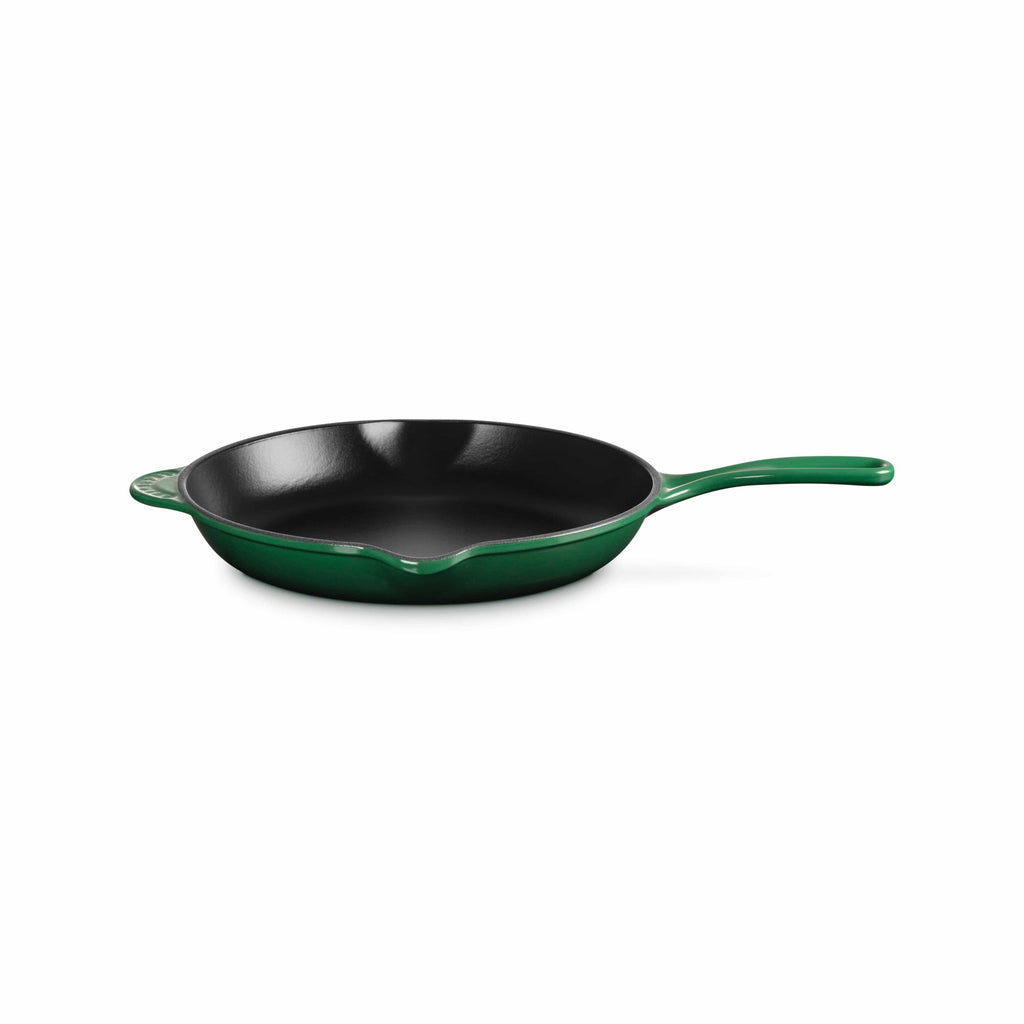 The Skillet is coated with Le Creuset’s specialist satin black enamel finish. Durable and easy to clean, the satin black enamel interior has been especially designed to protect the pan (no seasoning is required) and for high surface heat use. Over time, it develops a natural patina that is ideal for searing, browning and frying.