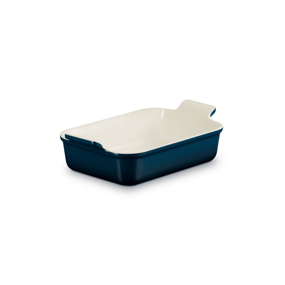 This heritage stoneware dish is a kitchen essential. Its rectangular shape fits all sorts of ingredients, making it a very versatile piece for your everyday roasting, baking, marinating and serving. Easy-grip scalloped handles mean it’s safe and effortless to move around, while deep side walls bring you plenty of cooking space.